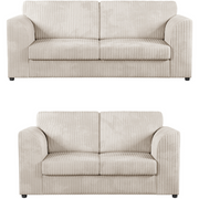 Chicago Jumbo Cord Full Back 2 & 3 Seater Sofa Set - Cream