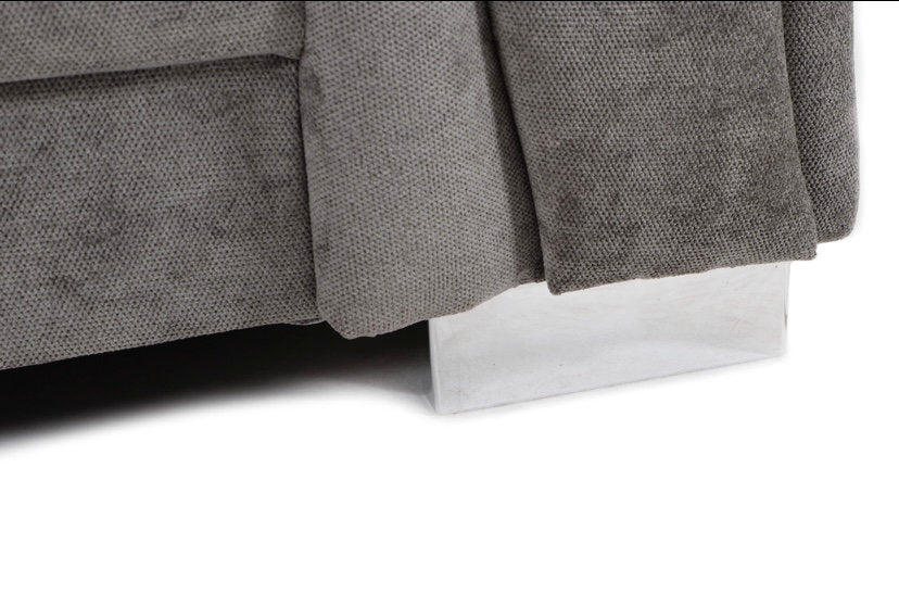Upholstered in a premium grey fabric