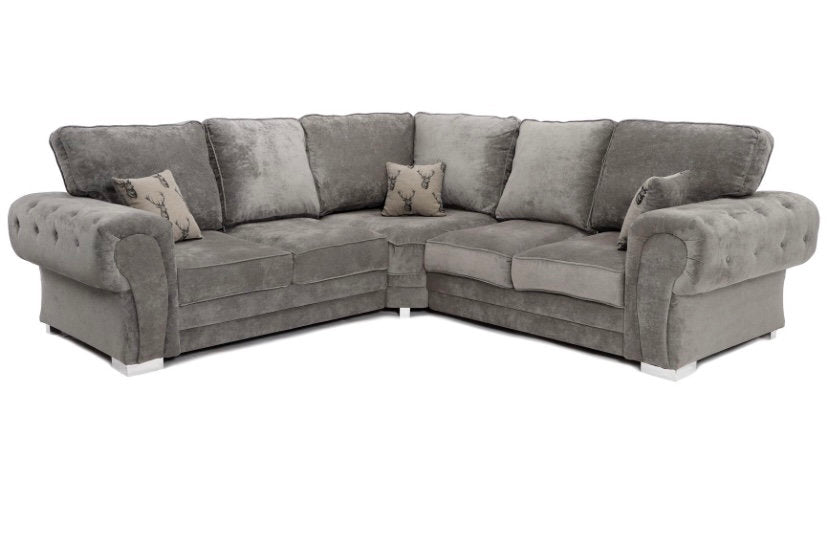 Chinford Grey Full Back Fabric Corner Sofa.