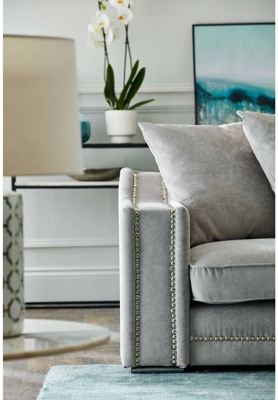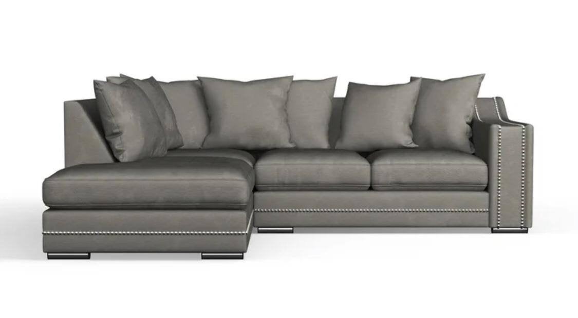 Introducing our Cruze Medium size corner sofa designed in maple fabric is now available in Charcoal Grey and Seal Grey. Soft and stylish arms complemented by studded trim offers an eye catching finish to your room. It comes with cosy, comfortable scatter back cushions, style and durability, this sofa is complete with plump and cushioned seats for the ultimate in chic lounging.