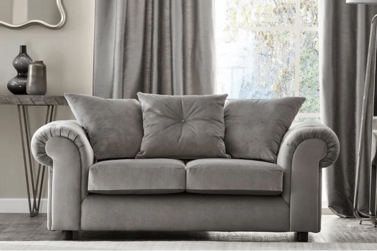 This style sofa has a scatter back design with button detailing. Perfect for small living room spaces. It can seat up to three people and with foam cushions, for added comfort.