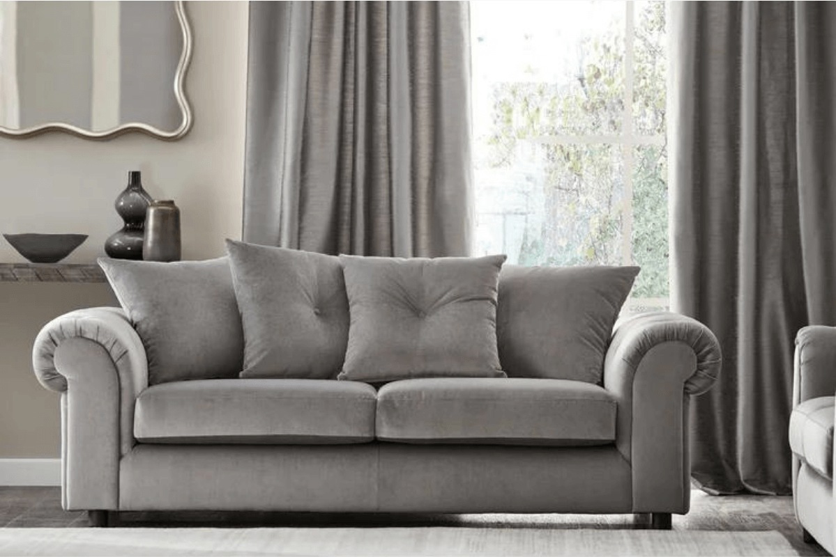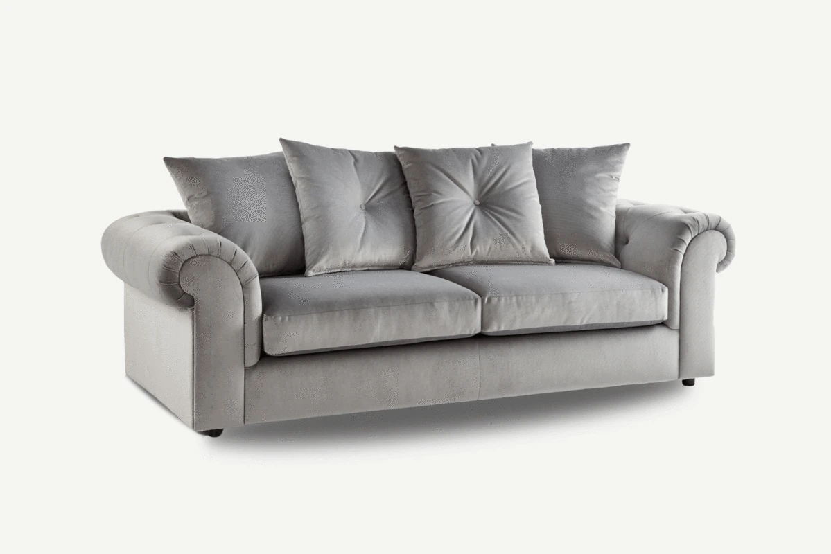 This style sofa has a scatter back design with button detailing. Perfect for small living room spaces. It can seat up to three people and with foam cushions, for added comfort.