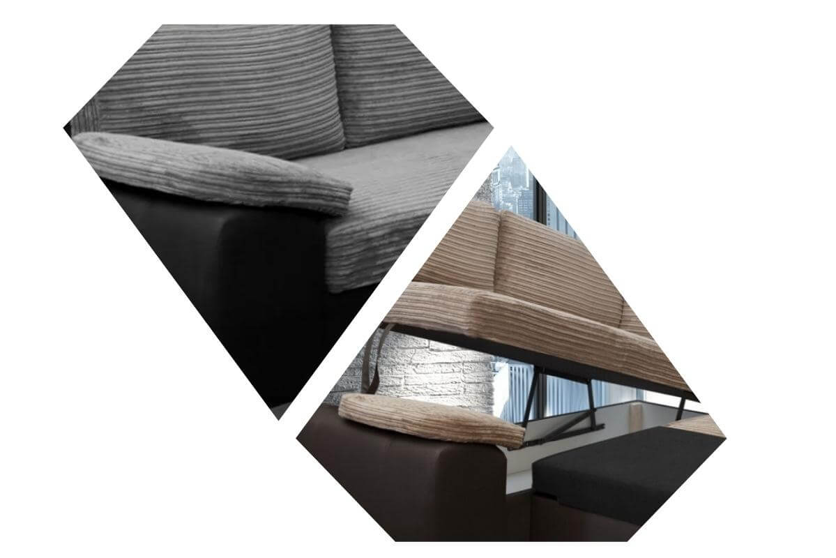 One part of this sofa hides massive storage while the other holds the bed mechanism.