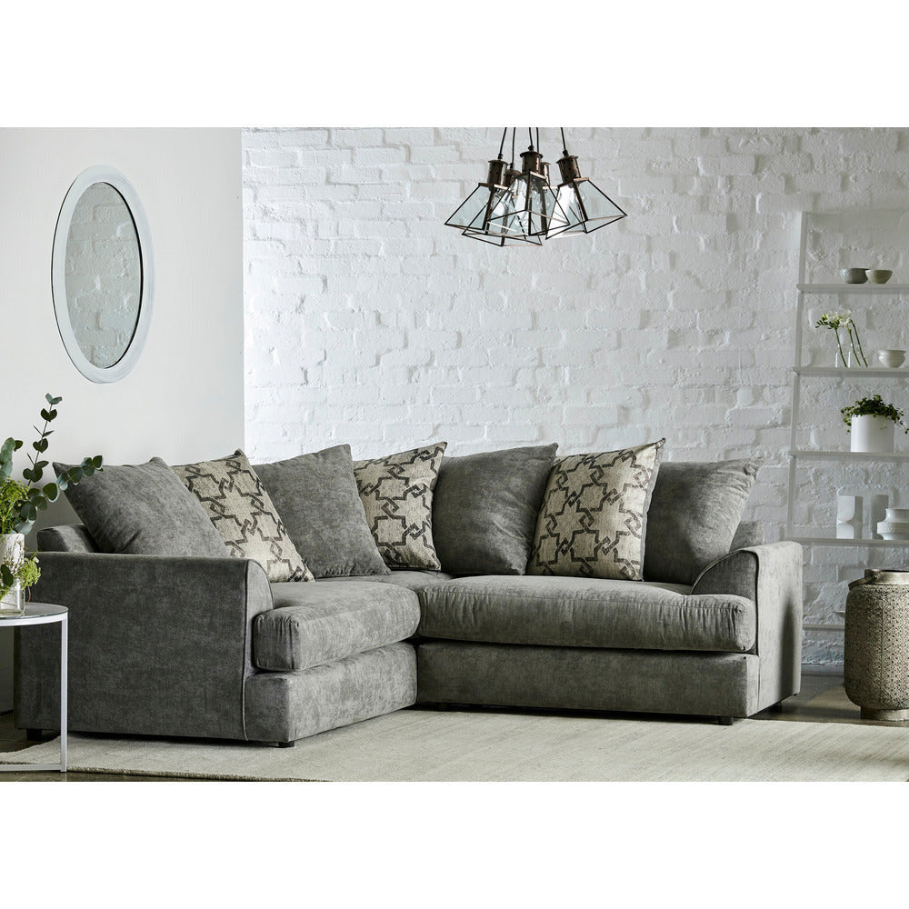 Kick back with your family on our Ferguson Grace soft linen corner sofa, the perfect addition to any home, finished in two popular fabric finishes, graphite grey & stone beige. The Farah corner sofa combines neutral colours with patterned accents for a luxurious eye catching look, your sure to get compliments with this one!