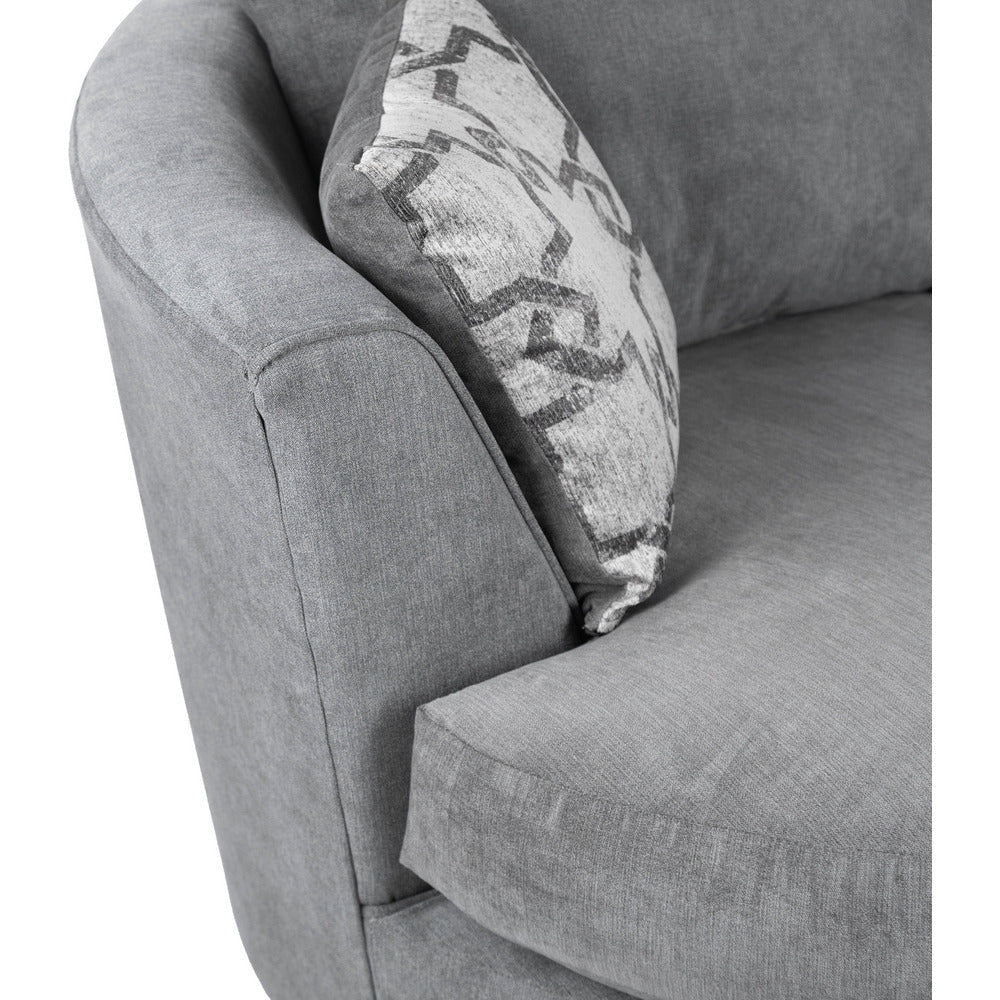 Relax on our Grace soft textured swivel chair after a long day with your favourite brew or gather the family to watch your favourite, this swivel chair is the perfect fit for any living space. Finished in a soft suede type upholstery which gives a smooth & soft feel to your relaxation. The Grace comes in two fabric finishes, grace grey or grace beige. Made in the United Kingdom Medium-Firm Seat Removable Back and Seat Cushions Scatter Back Cushions