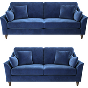 Hepburn Soft Linen Textured 2 & 3 Seater Sofa Set - Navy Blue