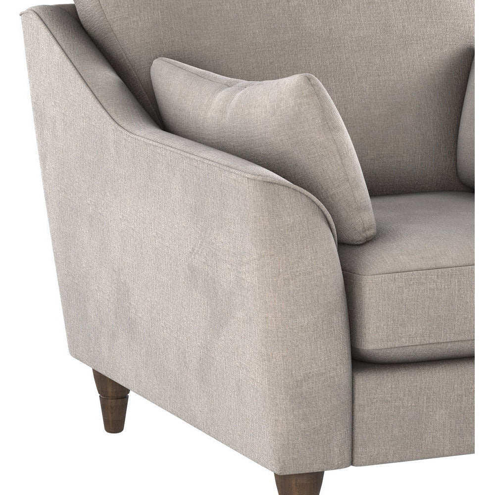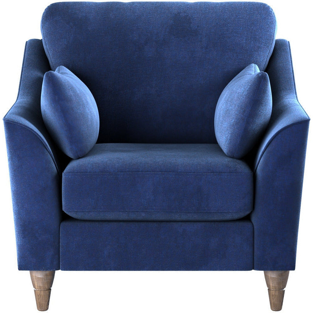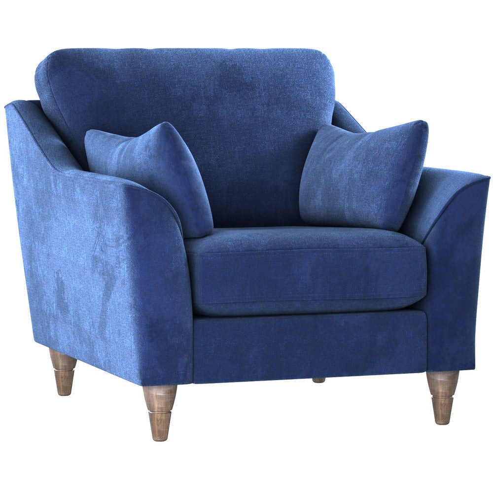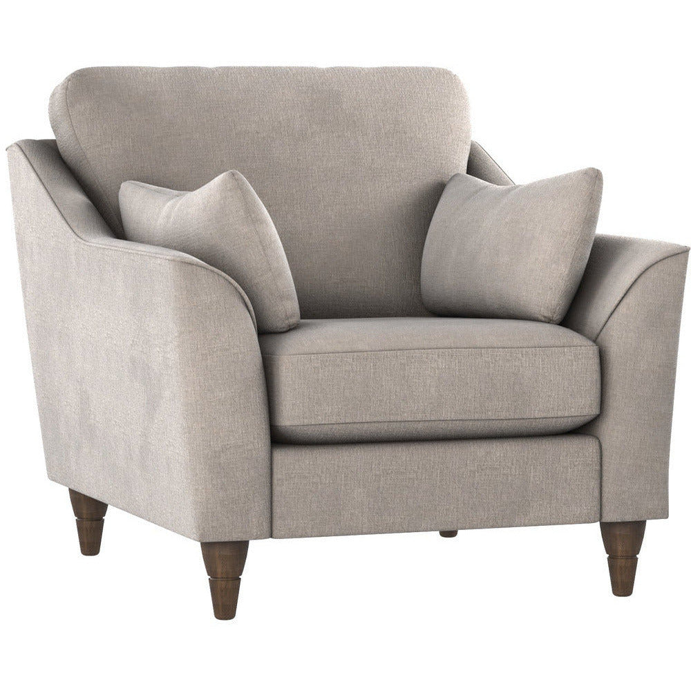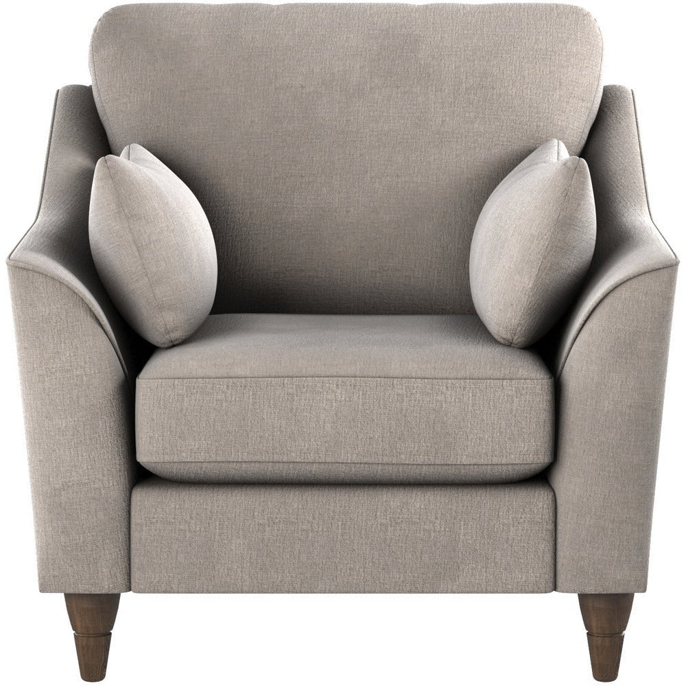 Create a space you'll love to relax in, and enjoy simple style and amazing comfort on the Hepburn sofa chair. Lovingly crafted and designed with a traditional shape. Enjoy the perfect balance between comfort and support with two soft scatter cushions and two bolster cushions adding an extra touch of comfort. Sitting on dark finished wooden legs which complement the design your living room deserves.