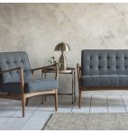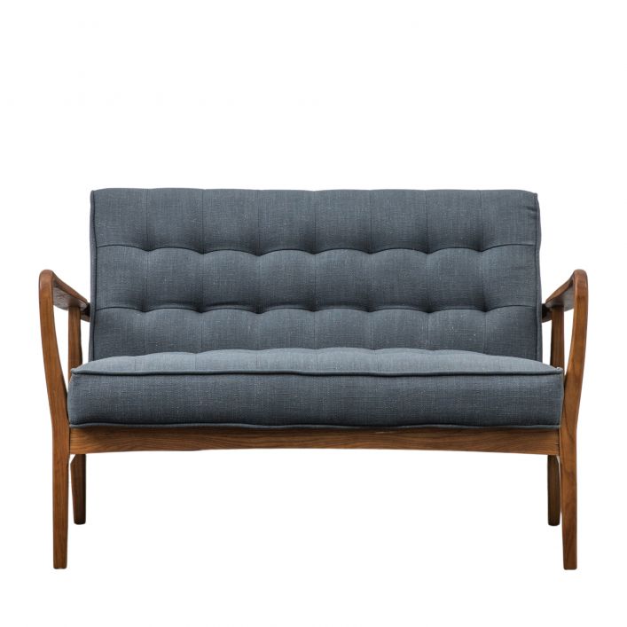 Dramatic, retro style 2 seater sofa in a soft dark grey linen with decorative deep pull detailing and a solid...
