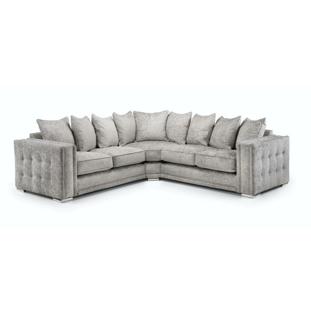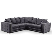 The Midas corner sofa finished in truffle grey is an eye-catching piece of sofa made for any modern living space. Finished in an elegant design with soft truffle grey fabric with studded squared arms which makes this corner sofa stand out.