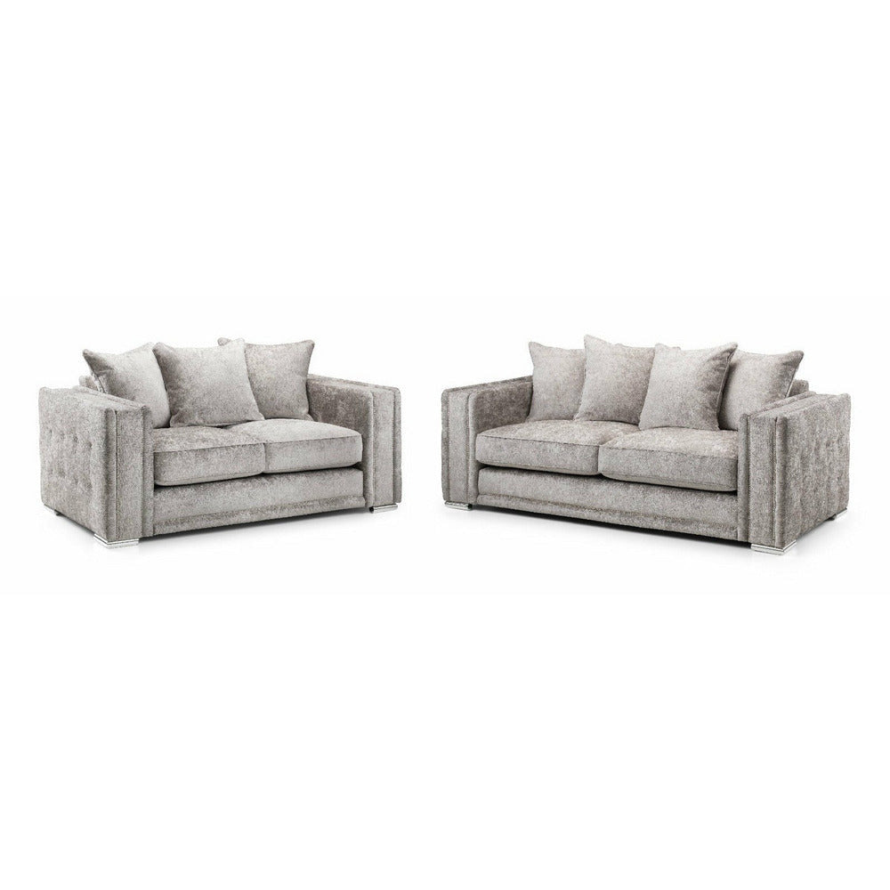 The Midas 2 & 3 seater sofa set finished in truffle grey is an eye-catching piece of sofa made for any modern living space. Finished in an elegant design with soft truffle grey fabric with studded squared arms which makes this sofa set stand out in any home.