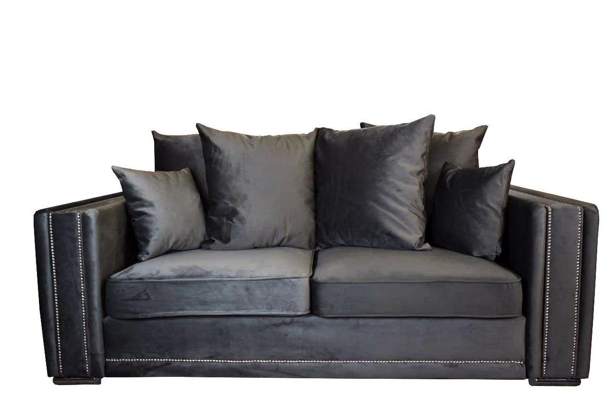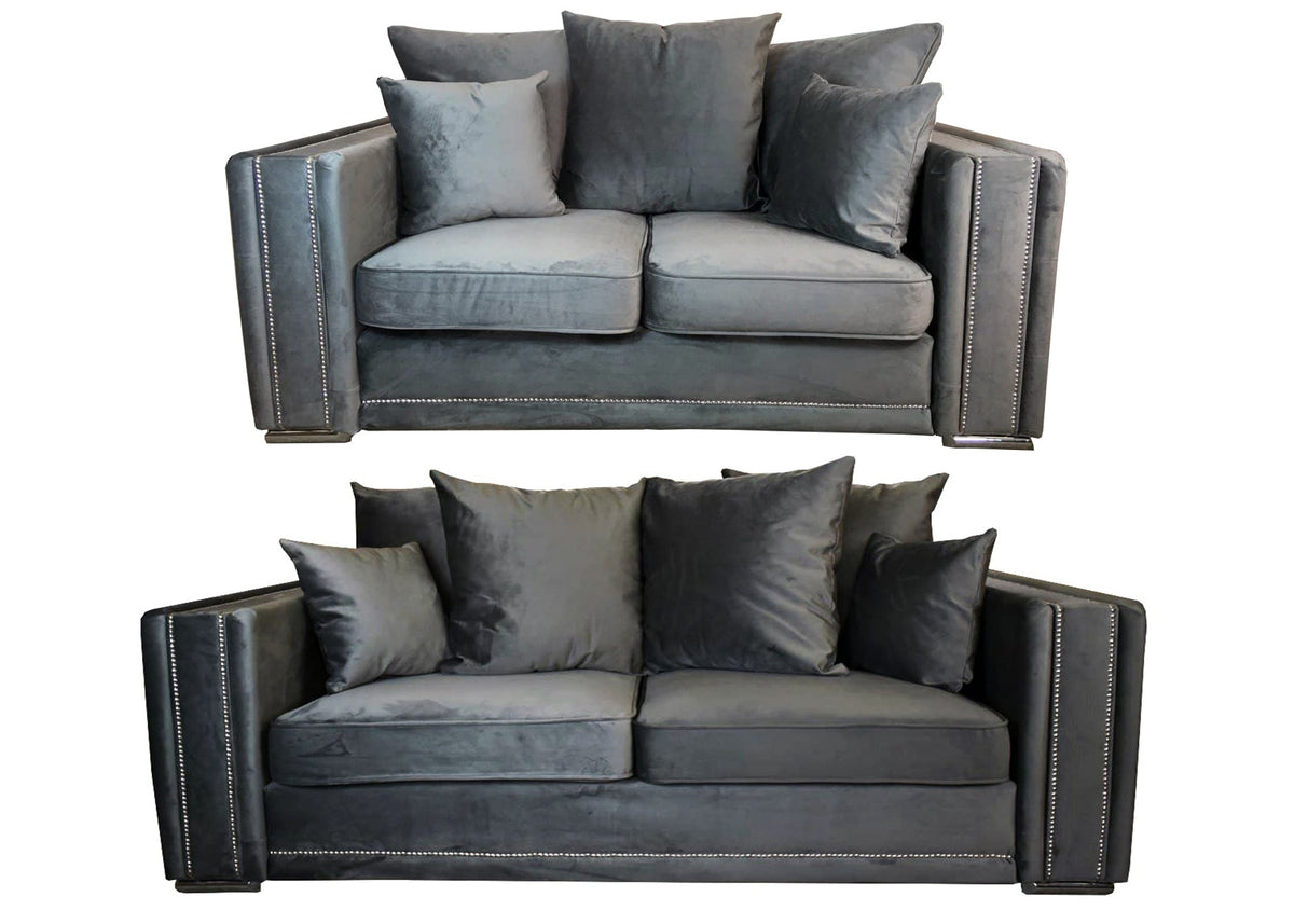Milan Grey Fabric Sofa Collection Upholstered in a plush velvet fabric Foam-filled seat cushions, for durability and longevity Soft fibre-filled back cushions for flexibility
