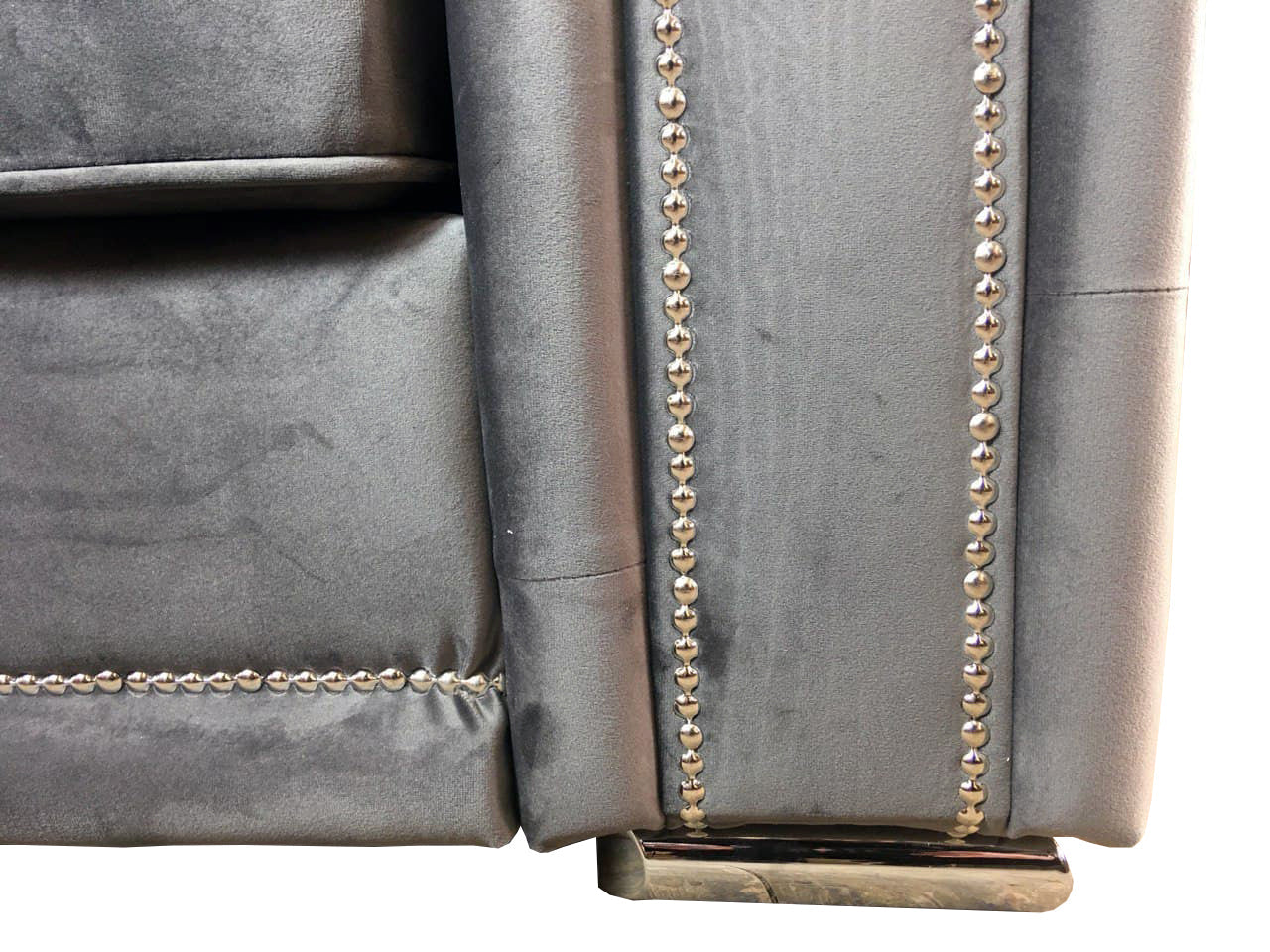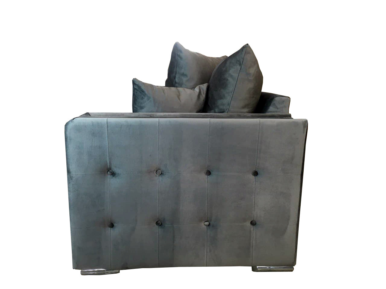 A new design that we have launched is our luxurious contemporary. . We provide this sofa in a beautiful Grey (charcoal) plush fabric, contrasted by the silver-toned studs which give the sofa a beautifully traditional push-style twist. The arm's design has been decorated with tufts to give you eye-catching attention to the detailing. We have specifically focused on comfort to accompany the intricate design. We offer a scatter back option with substantial fibre-filled back cushions and foam-filled seating cushions to keep you cosy all the while maintaining the highly luxurious style.