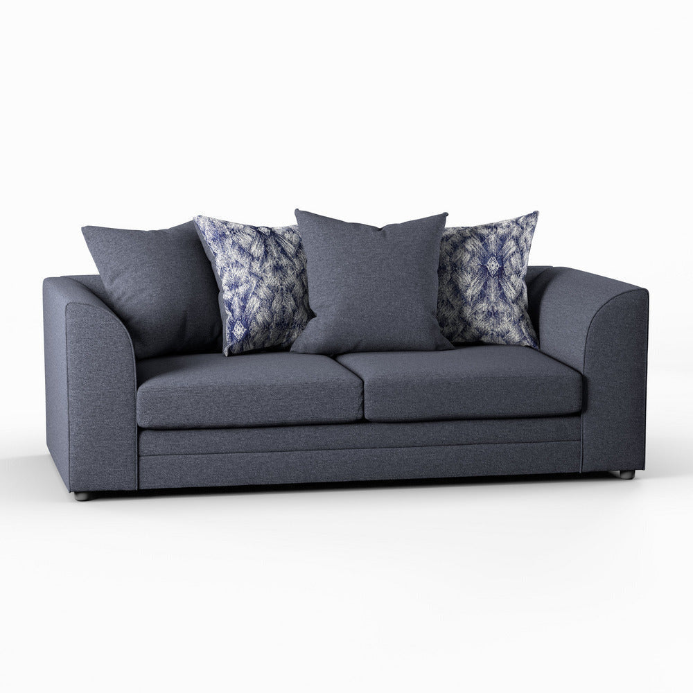 Missy 3 seater sofa sizeThe Missy sofa oozes in comfort & style, an eye catching statement to any type of living room, this one is sure to get your guests complimenting your home decor & interior taste. Large enough for the family to relax and watch your favourite drama thanks to our premium filled fibre scatter cushions for extra support & available in two beautiful chenille fabric colours, mistral grey & navy blue.