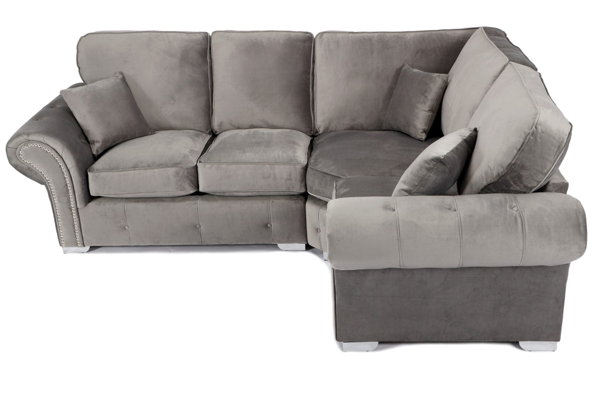 Available in three colours charcoal, plush grey and tan, this sofa range comes in a large corner option, 3-seater, 2-seater and armchair. You are sure to find something that works perfectly with the look, size and dimensions of your living room. A timeless look, these sofas are finished with a silver button panel design that adds an eye-catching intricate design to the collection. Making this sofa range perfect for a wide range of home décor designs, from a traditional design to something more modern and contemporary.