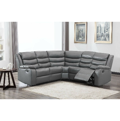 RECLINING CORNER SOFA IS A CONTEMPORARY STYLED FULLY RECLINED SOFA COVERED IN HIGH GRADED QUALITY BONDED LEATHER WITH TWO RECLINER ACTIONS ON BOTH ENDS. THE CHAISE STYLED LEG REST GIVES TOTAL SUPPORT, RECLINING CORNER SOFA MAKES ANY ROOM MORE PLEASING TO THE EYE.