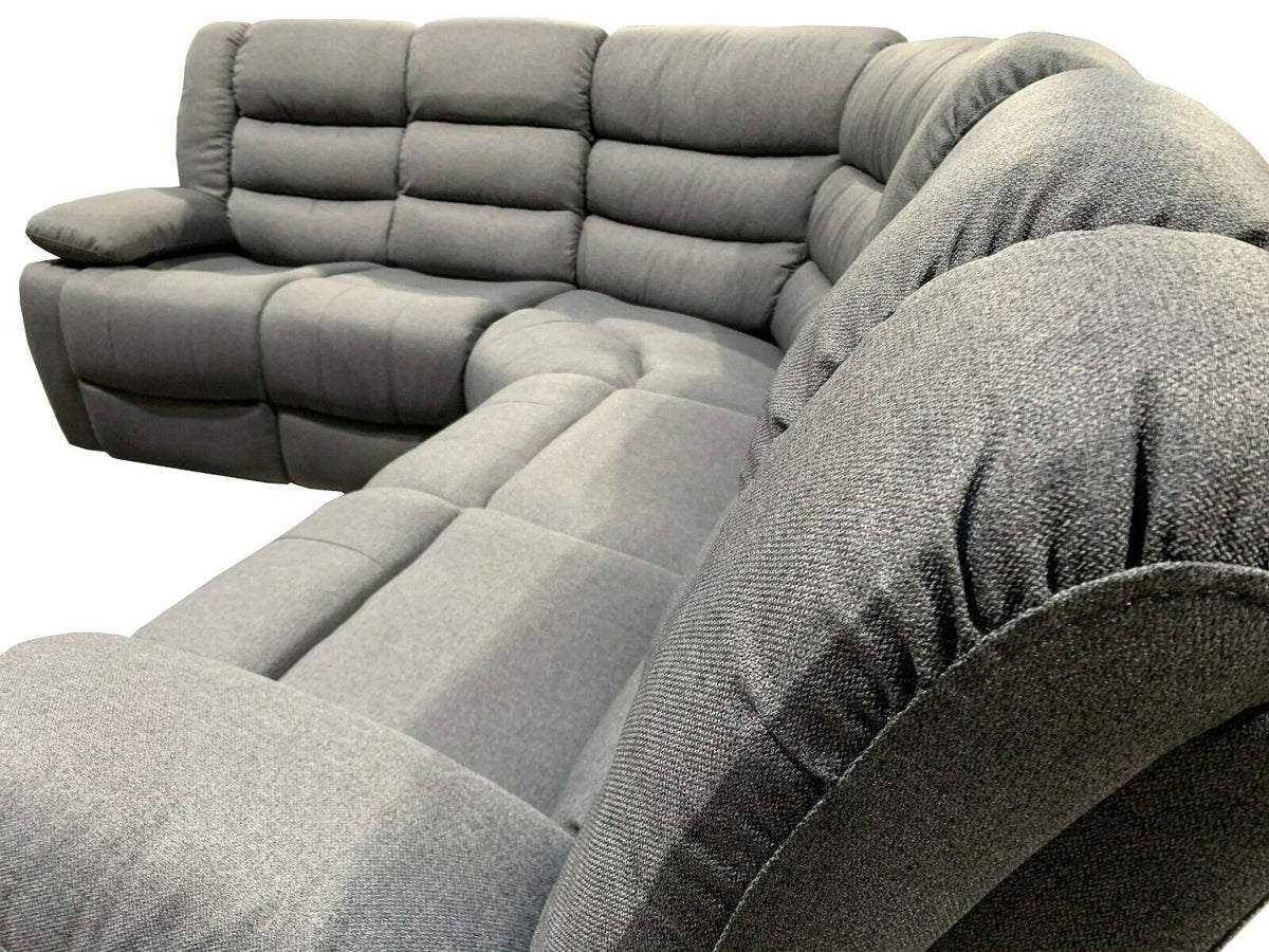 RECLINING CORNER SOFA IS A CONTEMPORARY STYLED FULLY RECLINED SOFA COVERED IN HIGH GRADED FABRIC WITH TWO RECLINER ACTIONS ON BOTH ENDS. THE CHAISE STYLED LEG REST GIVES TOTAL SUPPORT, RECLINING CORNER SOFA MAKES ANY ROOM MORE PLEASING TO THE EYE.