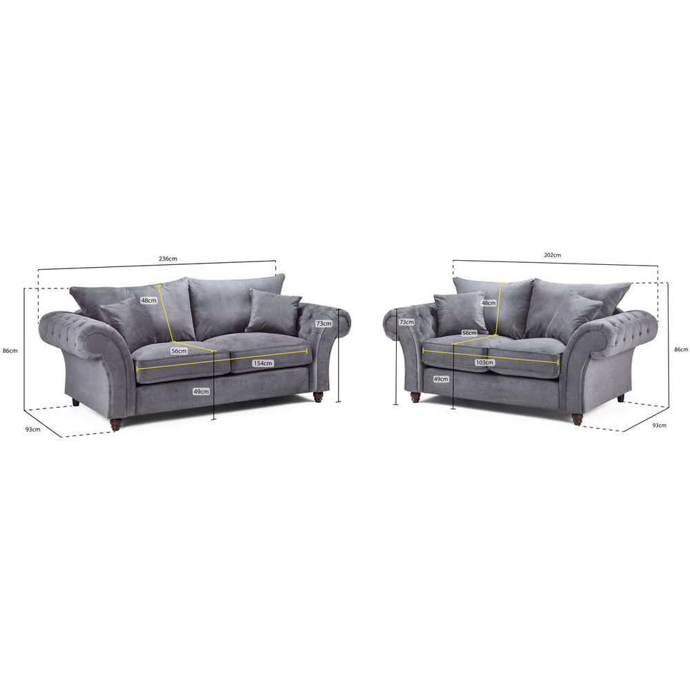 Windsor Soft Textured Grey 2 & 3 Seater Sofa Set