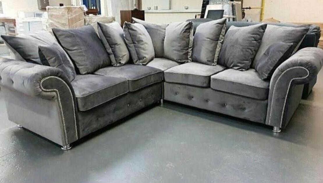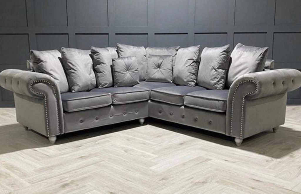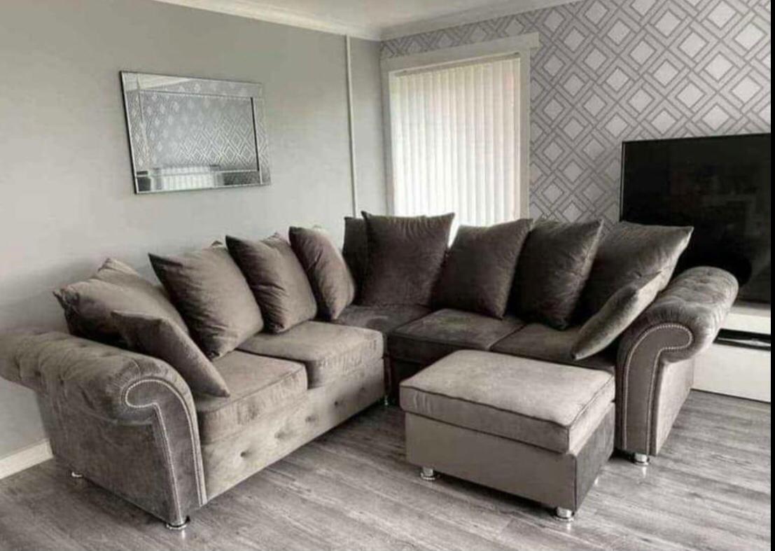 Modern and classic farrow corner sofa. Farrow charm and class in both a black and grey pairing and a brown and beige colour scheme.