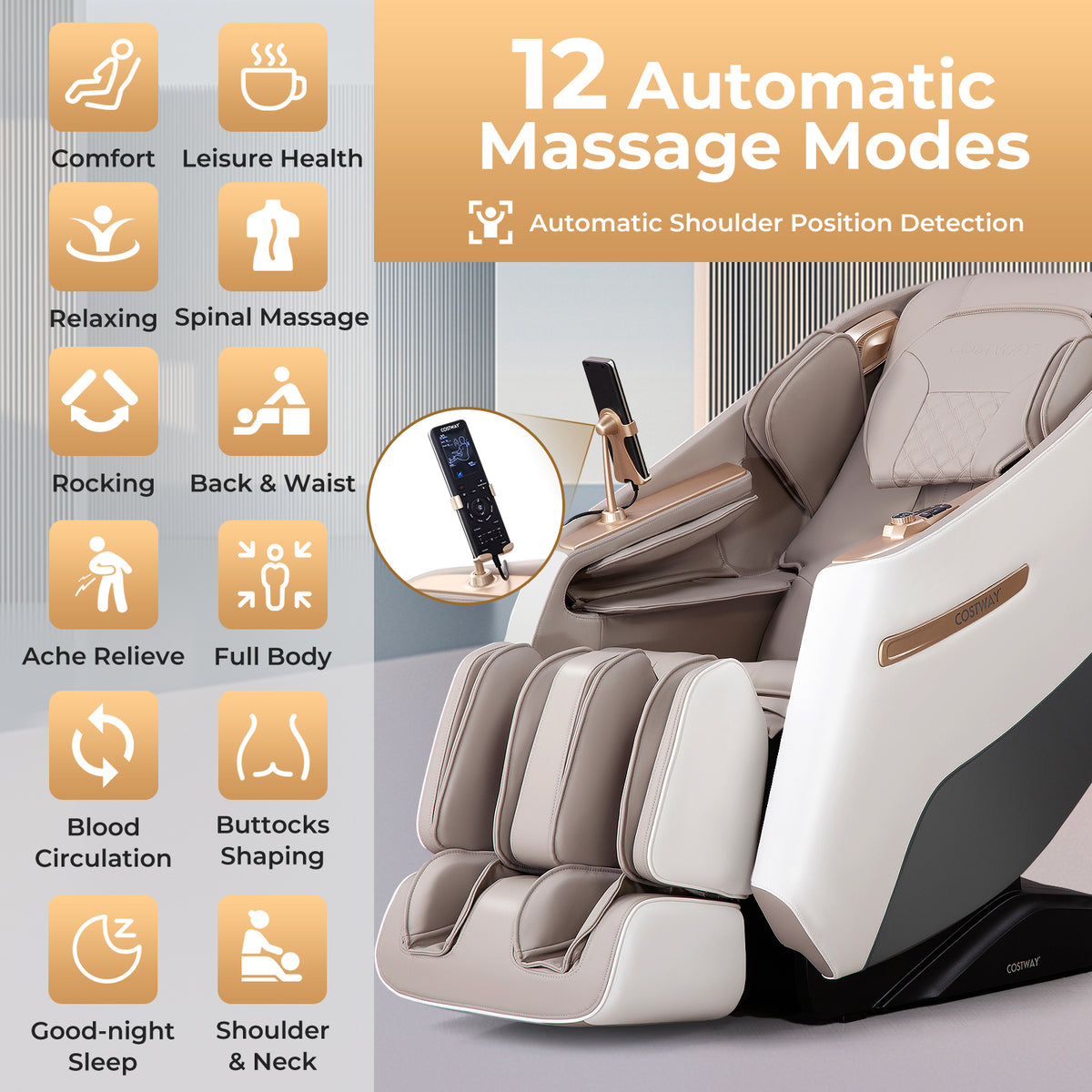 Zero Gravity SL Track Shiatsu Massage Recliner Chair with Waist Heating-White