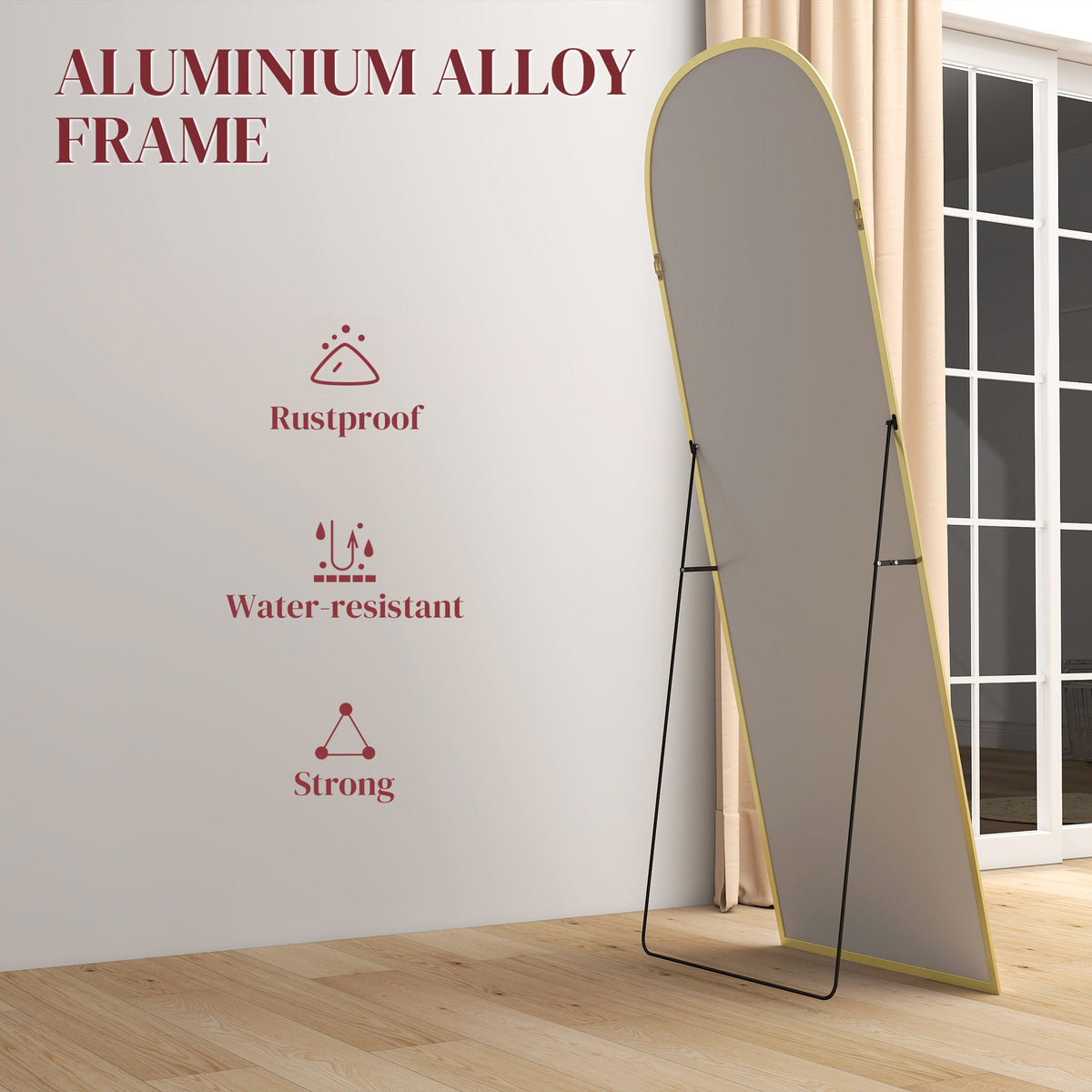 HOMCOM 165cm Aluminium Frame Standing Mirror - Gold - Gold Tone