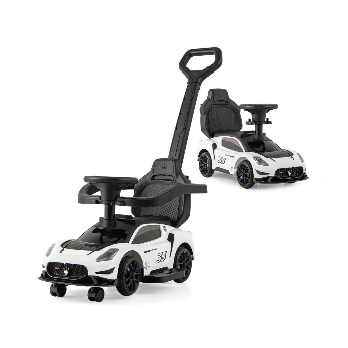 This Maserati licensed push car combines luxury with a musical steering wheel that plays delightful tunes, steering your child towards imaginative journeys. Safety is paramount with a protective guardrail and anti-roll baffle. The high-quality wheels ensure a smooth ride on any terrain like cement road, wood floor, brick road and asphalt road. Moreover, the push car also features multiple thoughtful details, such as handlebar with a hook, comfortable backrest and convenient foot pedal. Gift the adventure of a lifetime with this ride-on car, which not only entertains but also nurtures good habits with its under-seat storage. A perfect present for the young explorers aged 18-60 months, this car is a stylish and safe choice for cherished playtime memories. 3-in-1 Multifunctional Design: With removable handlebar, guardrail, footrest and 2 detachable universal wheels, this magical ride on car transforms from a stroller (18-24 months) to a walking car (25-36 months), and a foot-to-floor sliding car (37-60 months). This 3-in-1 versatile toddler car will accompany your little one during different growing stages with endless fun. Steering Wheel with Musical Fun: Engage your child’s senses with the steering wheel that can steer 40° left and right. The steering wheel can play delightful horn and music, offering more joys as kids steer their way to imaginative journeys. Maserati Licensed Push Car: Experience the thrill of luxury with the officially licensed Maserati push car, designed to inspire young hearts with its sleek style and iconic brand, making playtime a stylish affair. Flexible and Safe Riding: This adorable ride on car features a protective guardrail and handlebar, ensuring a secure grip and a smooth ride. 4 large tires which are wear resistant, anti-slip and puncture proof ensure bump-free ride on different terrains. Moreover, the anti-roll baffle on the back adds higher safety. Awesome Gift Option: Looking for the perfect present? This ride on car with EN71 compliant is not just a toy but a treasured companion for your child’s growth. The under-seat storage compartment will cultivate kid’ good habits of organizing. All in all, it will be an awesome gift that will be cherished for years to come for your little adventurers aged 18-60 months.