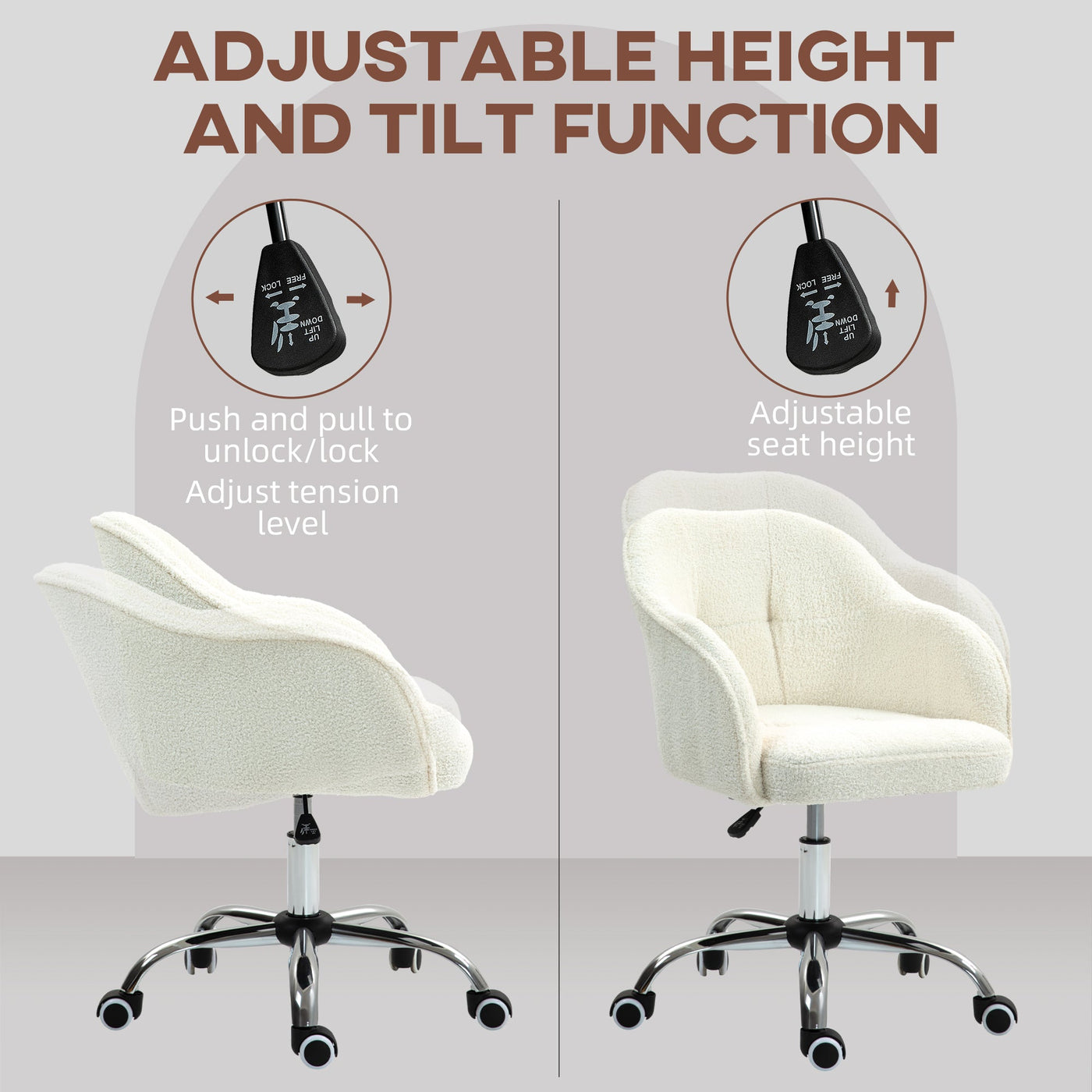 Snuggle into the work day with this HOMCOM office desk chair. The seat is wrapped in faux teddy fleece upholstery: it's super soft. You can adjust the seat height between 46-56 cm, to sit at a level you want. Filled with sponge to sit comfortably, with a tall back and armrests for support, this small office chair is complete with five wheels to move it around easily.