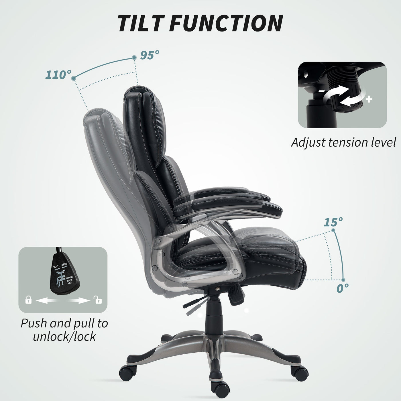 HOMCOM 49.5-59cm Faux Leather Office Chair - Black - Black