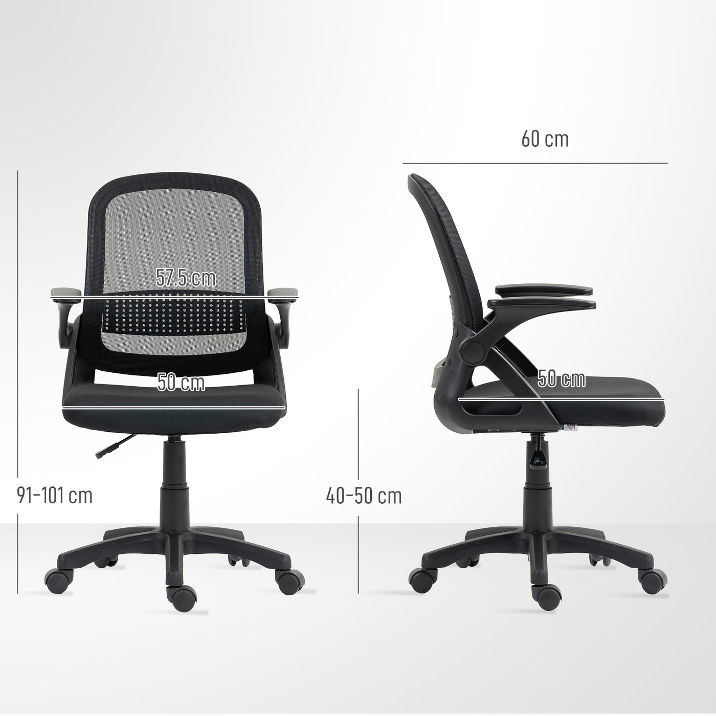 HOMCOM Breathable Mesh Office Chair, Ergonomic Swivel Computer Chair with Flip-up Armrests, Lumbar Back Support for Home/Office, Black - Black