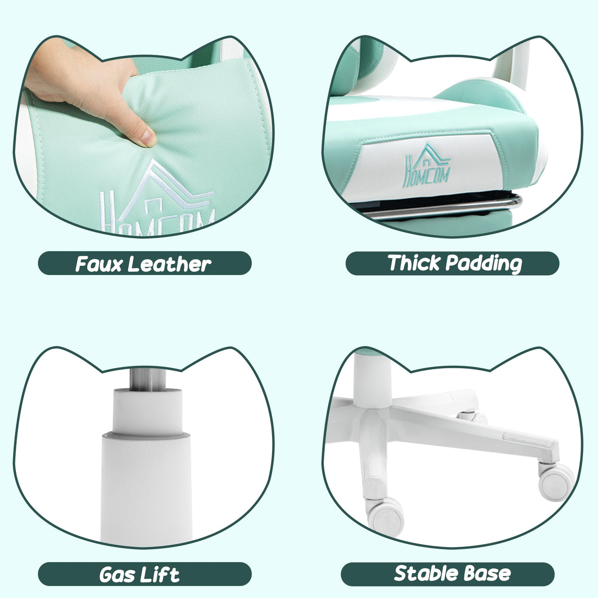 Focused on the game, in cat style with this HOMCOM gaming chair with footrest. It's decorated with cat ears and paw for a cute look. The medium-density foam padding keeps you comfortable, with a high back and armrests for support. Adjust seat height between 44-52cm to game at a position for you. Enjoy the freedom to recline up to 135°, complete with the retractable footrest to elevate the lower body.