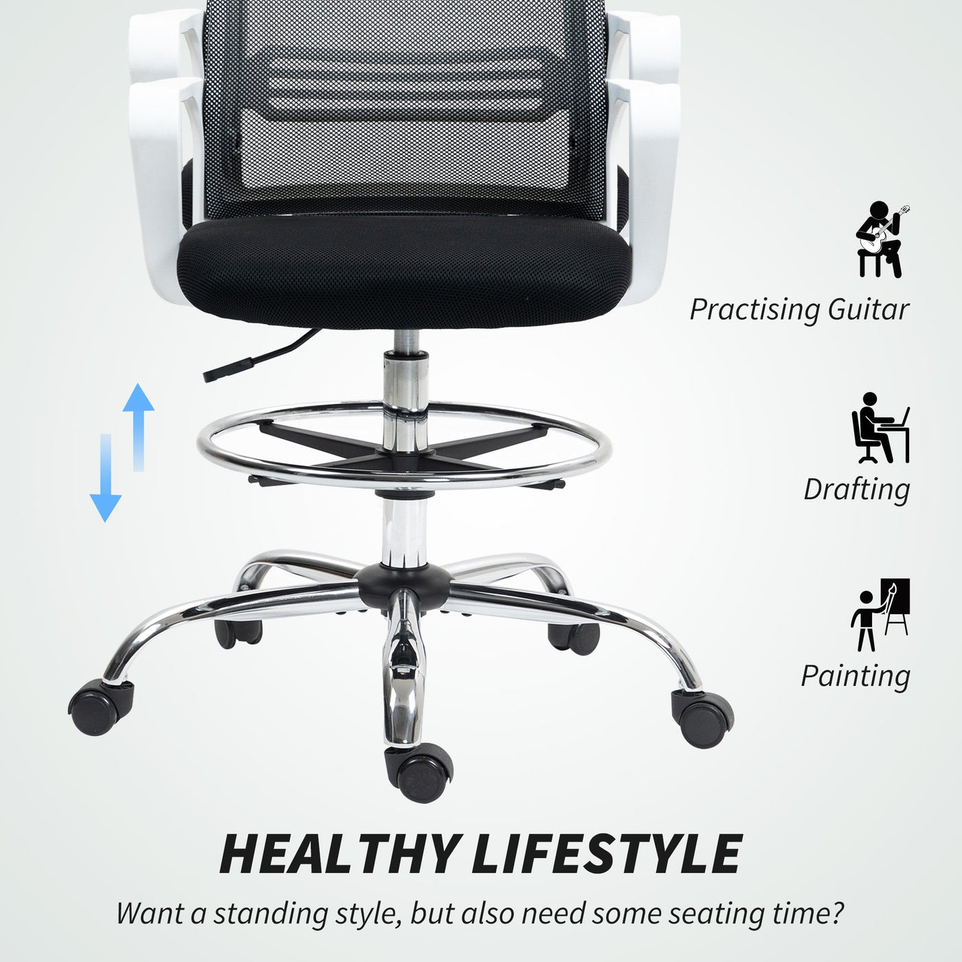 HOMCOM Draughtsman Chair, Mesh Drafting Chair, Ergonomic Office Chair with Lumbar Support, Adjustable Foot Ring, Black - Black