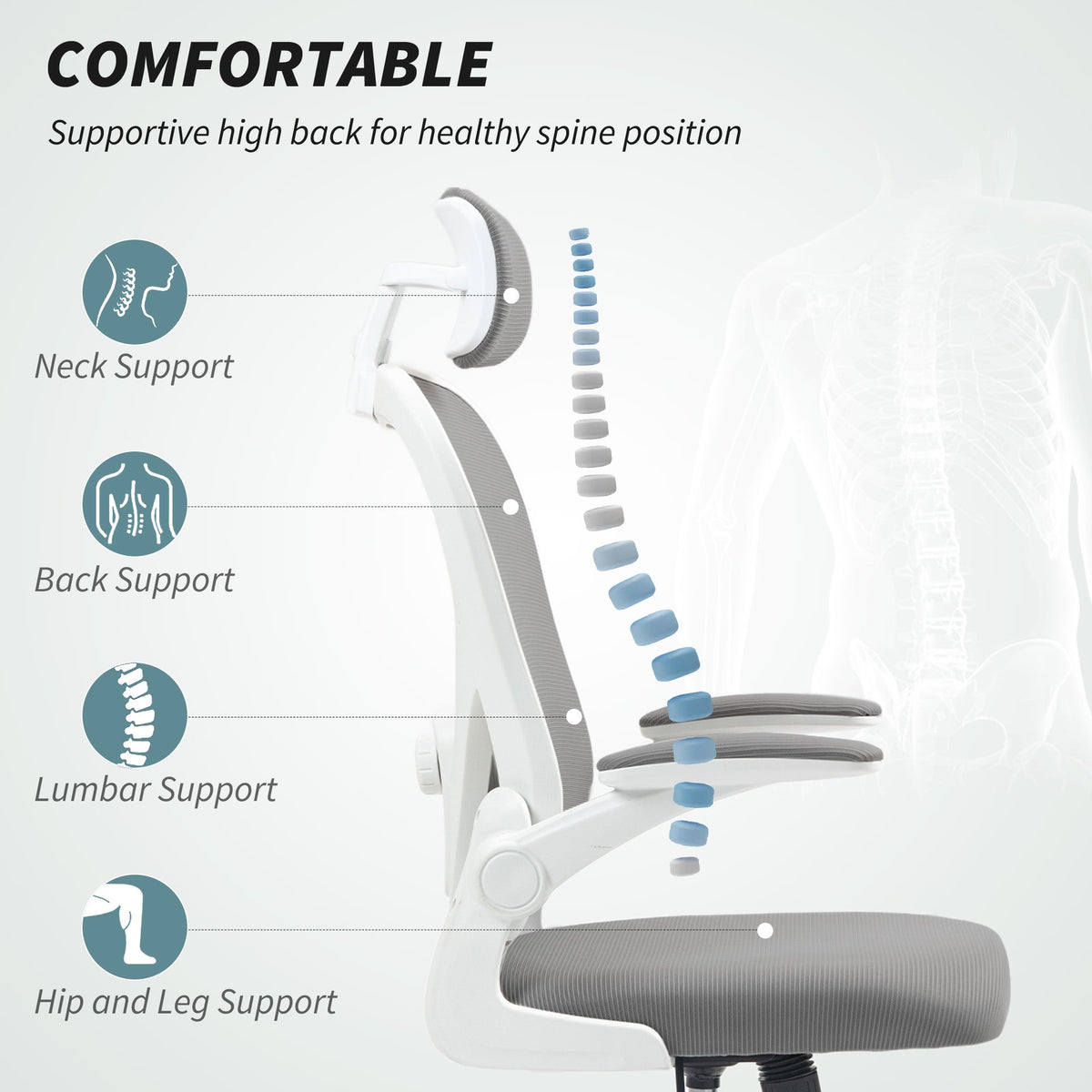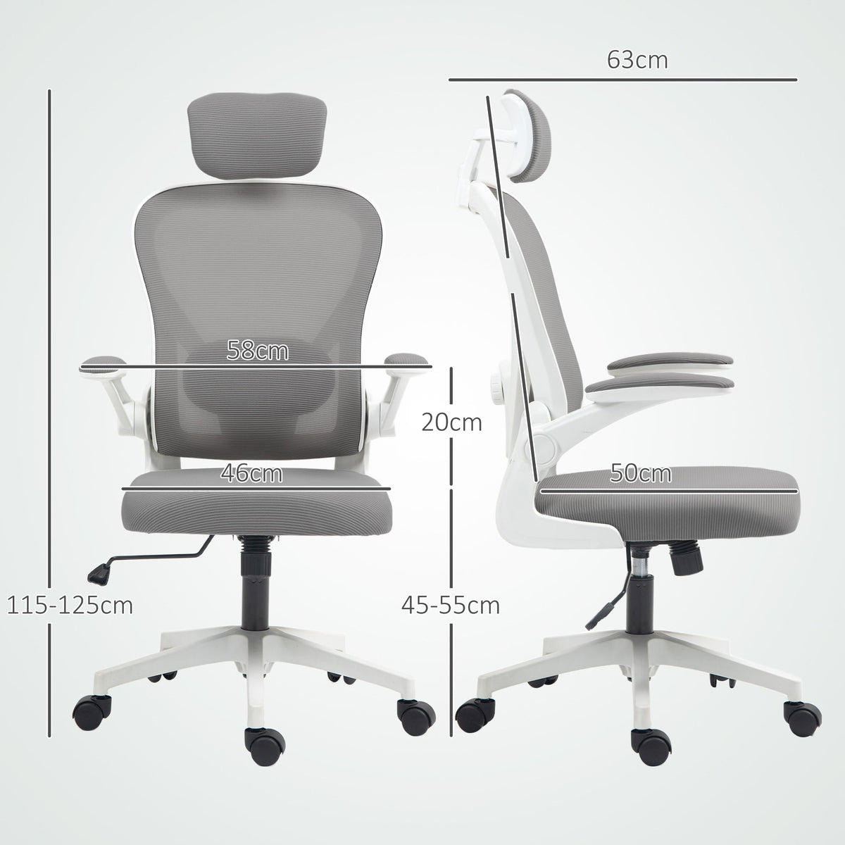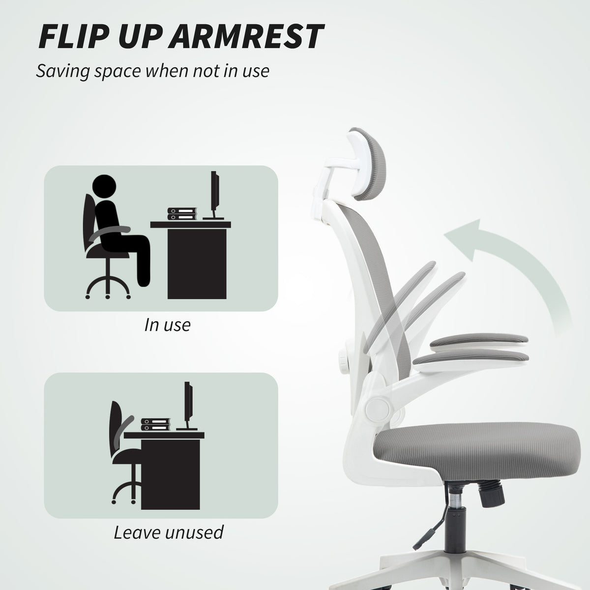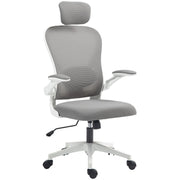 HOMCOM Executive Office Chair, Ergonomic Mesh High Back Desk Chair with Flip-up Armrest, Rotatable Headrest, Adjustable Lumbar Support for Home Study, Grey - Grey