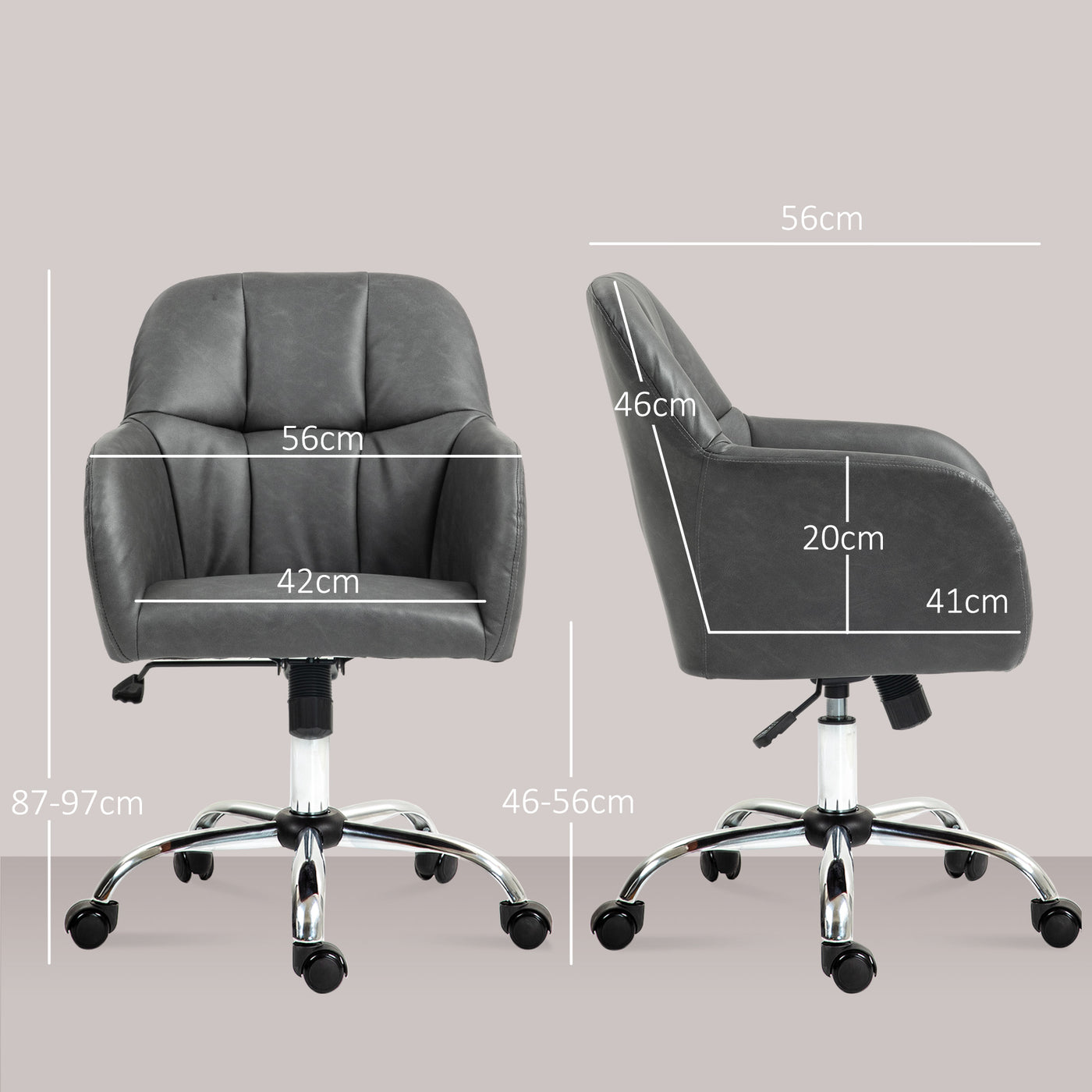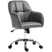 HOMCOM Faux Leather Tub Office Chair, with Wheels - Grey - Grey