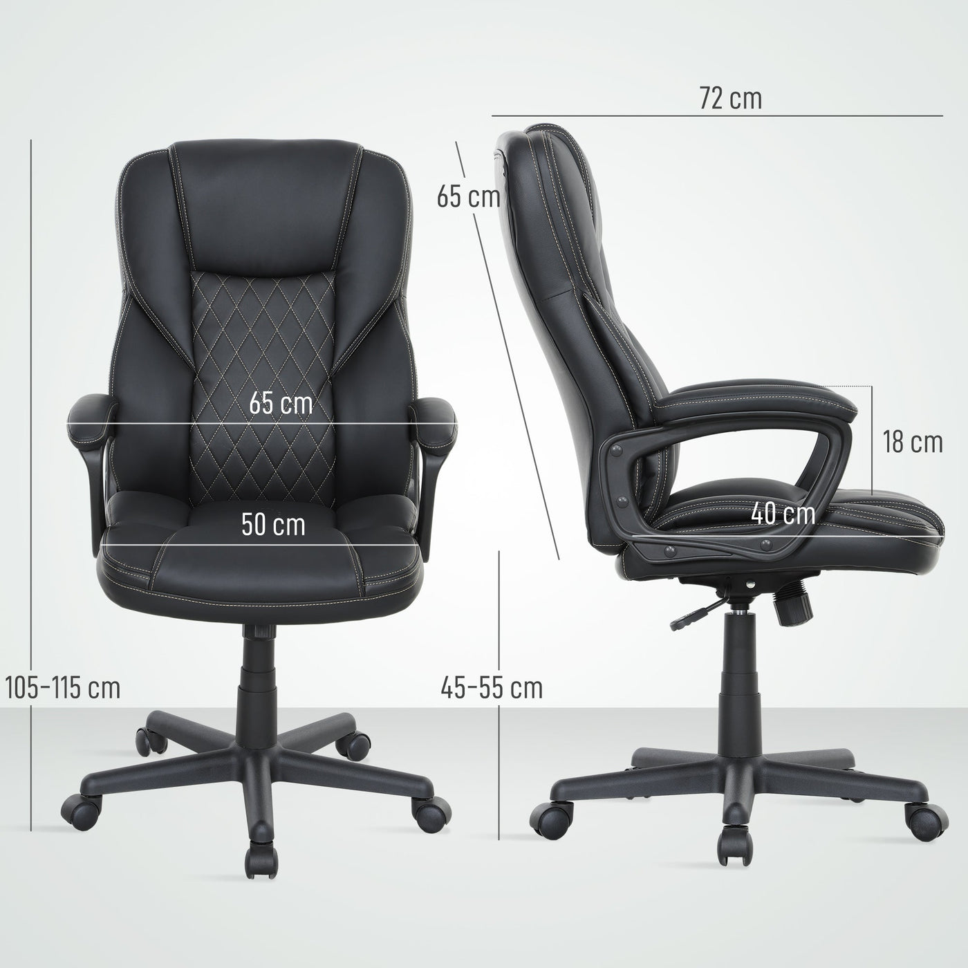 HOMCOM High Back Executive Office Chair, PU Leather Swivel Desk Chair with Tilt Function, Armrests and Adjustable Height for Home Office, Black - Black