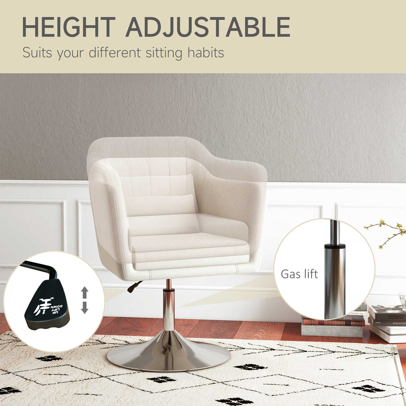 HOMCOM Modern Accent Chair with Swivel Base, Height Adjustable Arm Chair with Pillow for Living Room, Bedroom, Cream White - Cream