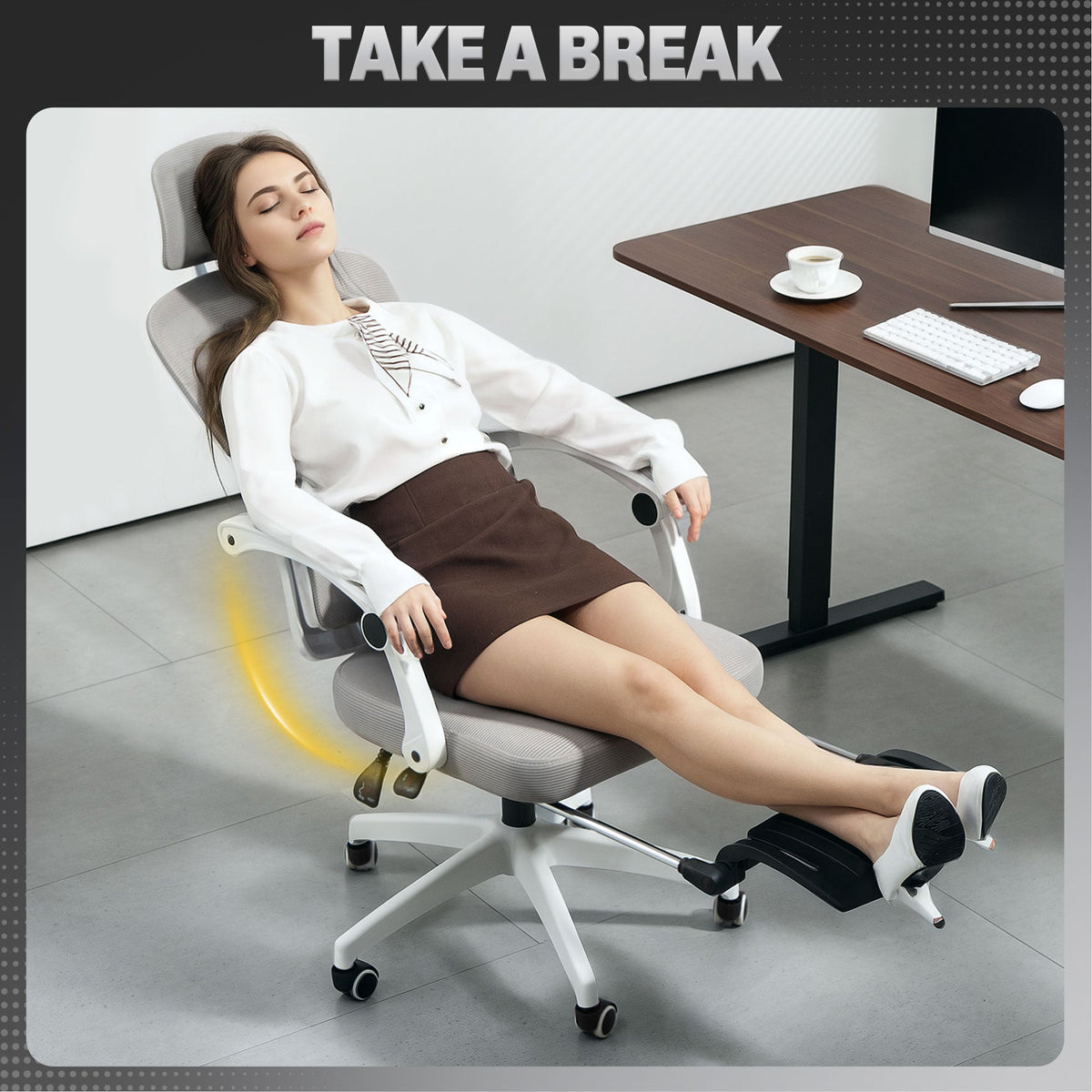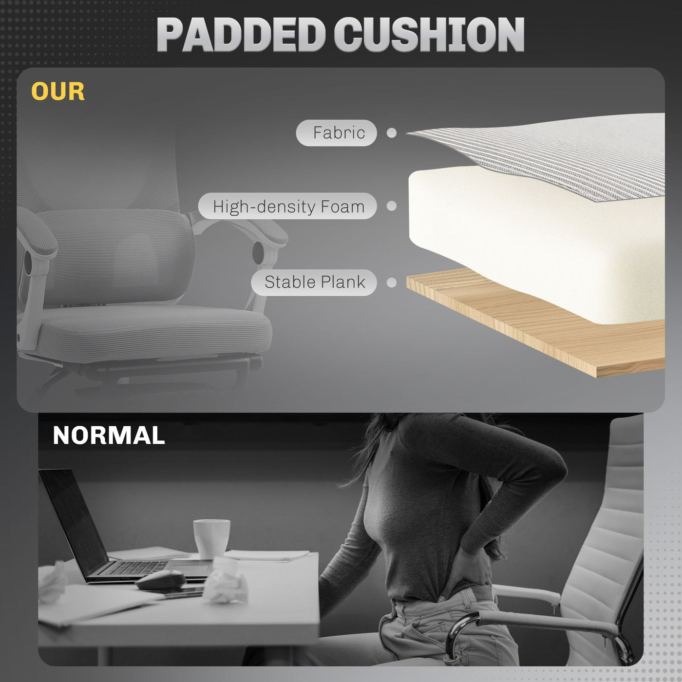 An all-rounder for the work days, with this HOMCOM office chair. With adjustable lumbar support, rotatable headrest, adjustable height and reclining back, this is a design which is made to suit you, and keep you supported throughout the workday. Plus, with the padded seat and footrest, you'll be kept comfortable and relaxed with ease.