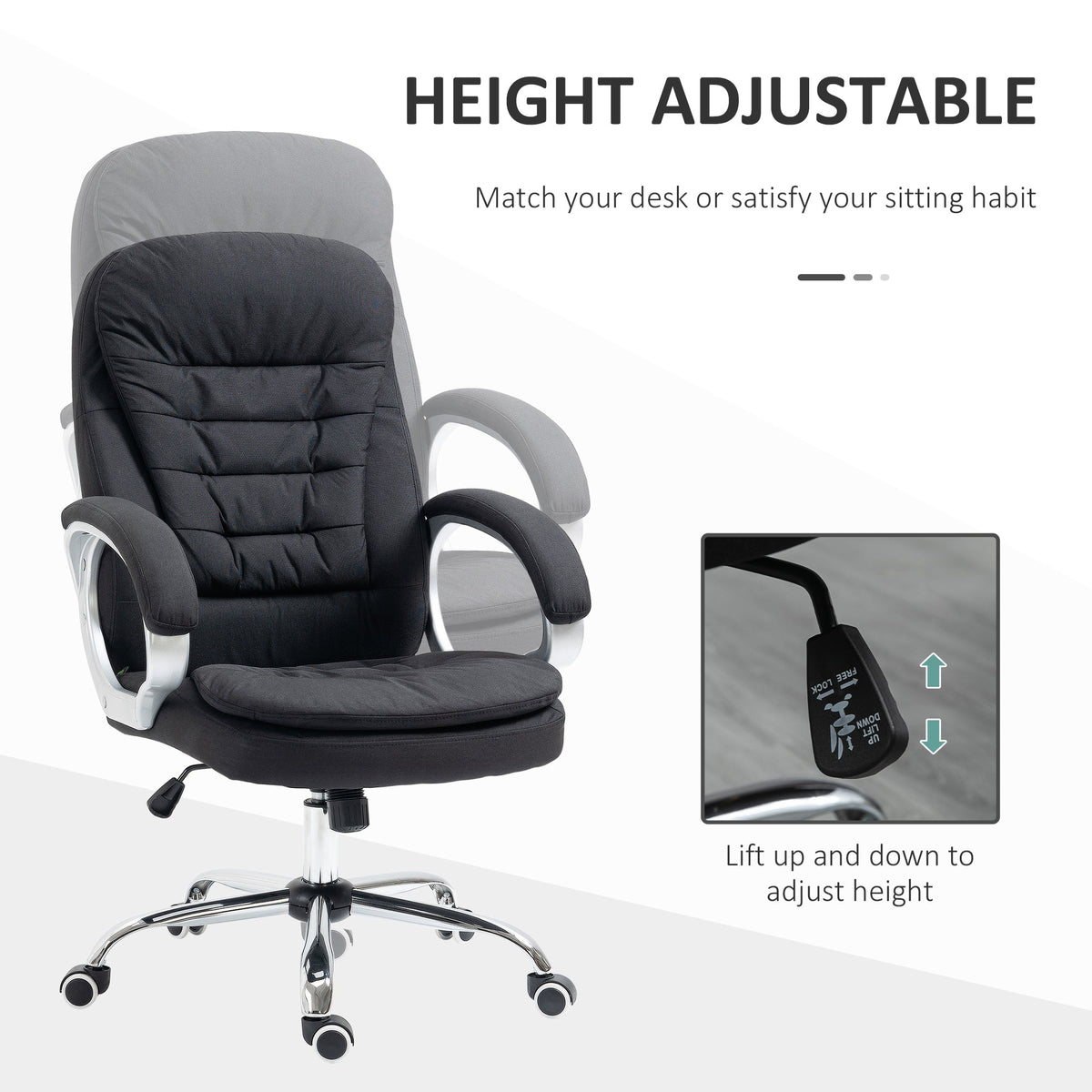 HOMCOM Office Chair Computer Chair Executive Office Chair with Height Adjustable, Comfortable Desk Chair for Home Office Fabric Black - Black