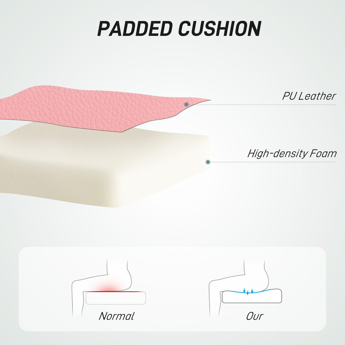 HOMCOM PU Leather Armless Office Chair, Modern Vanity Computer Swivel Chair with Rolling Wheels and Adjustable Height for Home Study, Bedroom, Pink - Pink