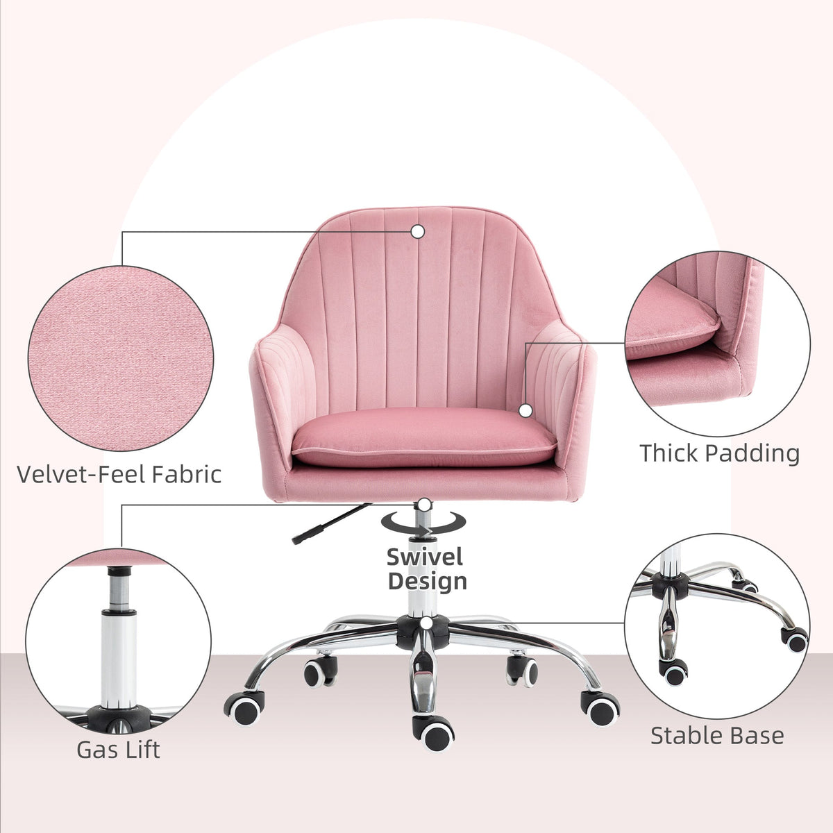 HOMCOM Velvet-Feel Tub Office Chair, with Seat Cushion - Dark Pink