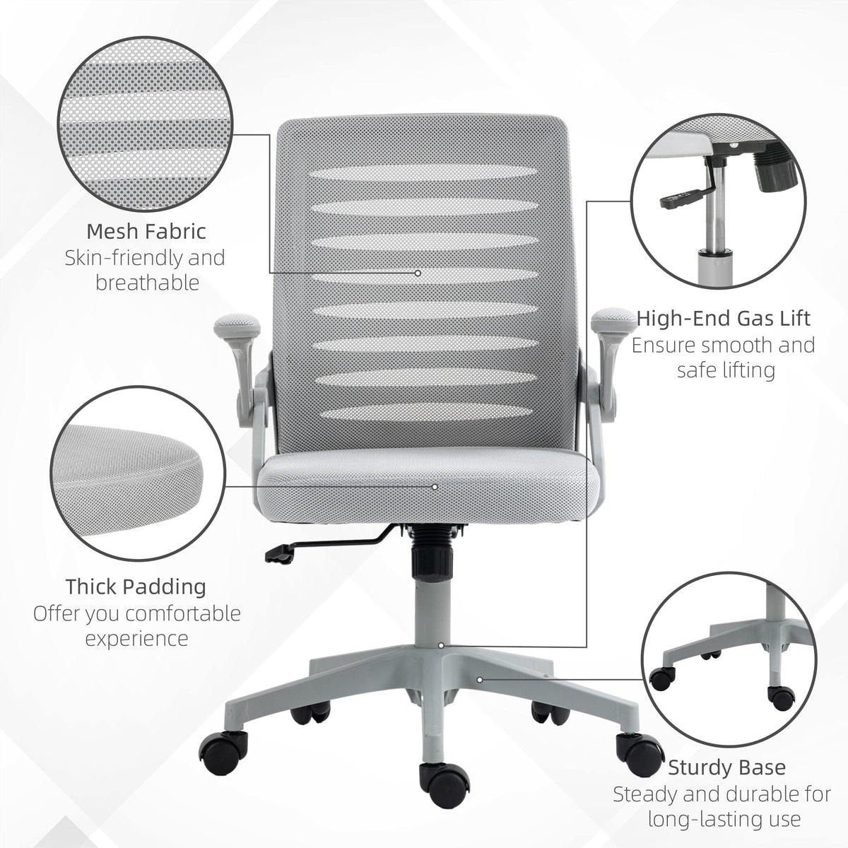Vinsetto 44-53.5cm Adjustable Height Work Chair, with Mesh Back - Grey - Grey