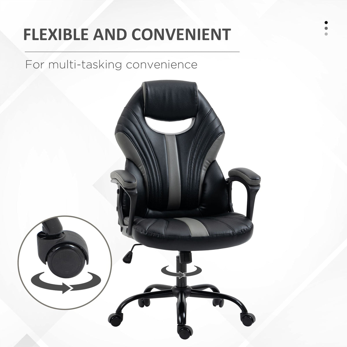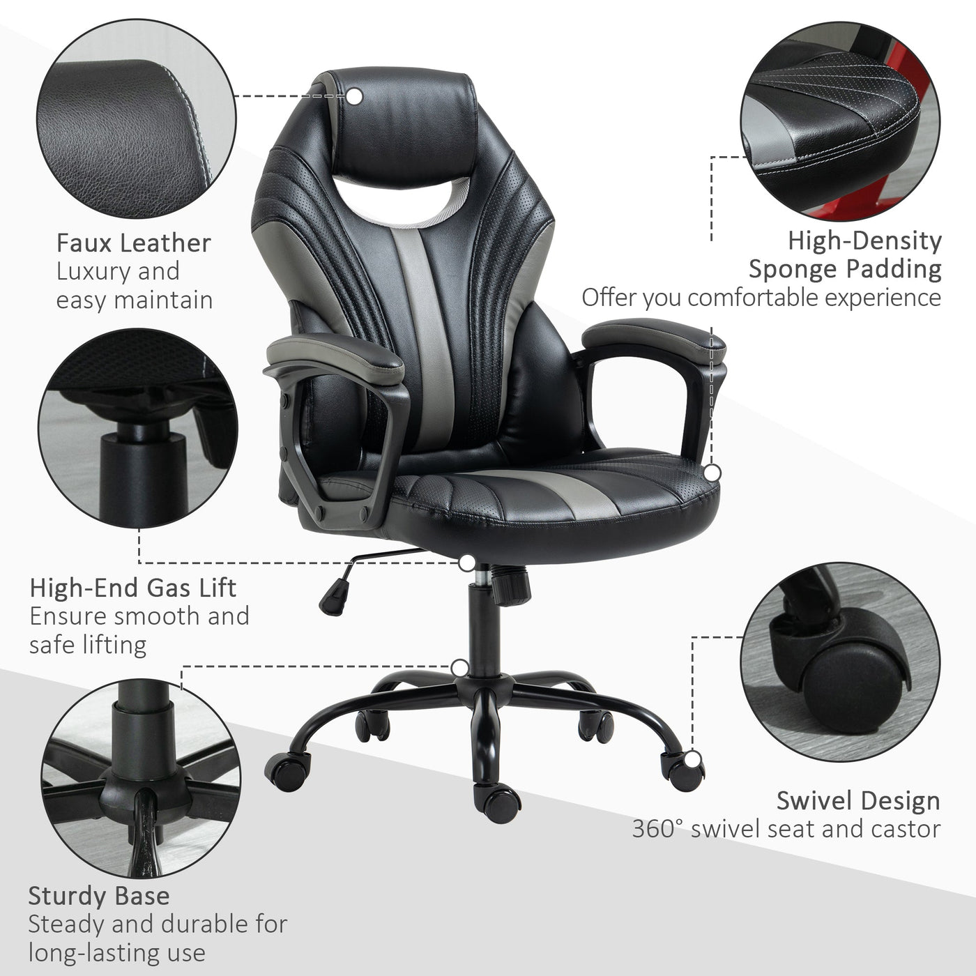 Vinsetto Computer Gaming Chair, Desk Chair with Breathable PU Leather Back and Seat, Soft Padded Armrests and Rolling Wheels for Adults and Gamers, Black - Dark Grey