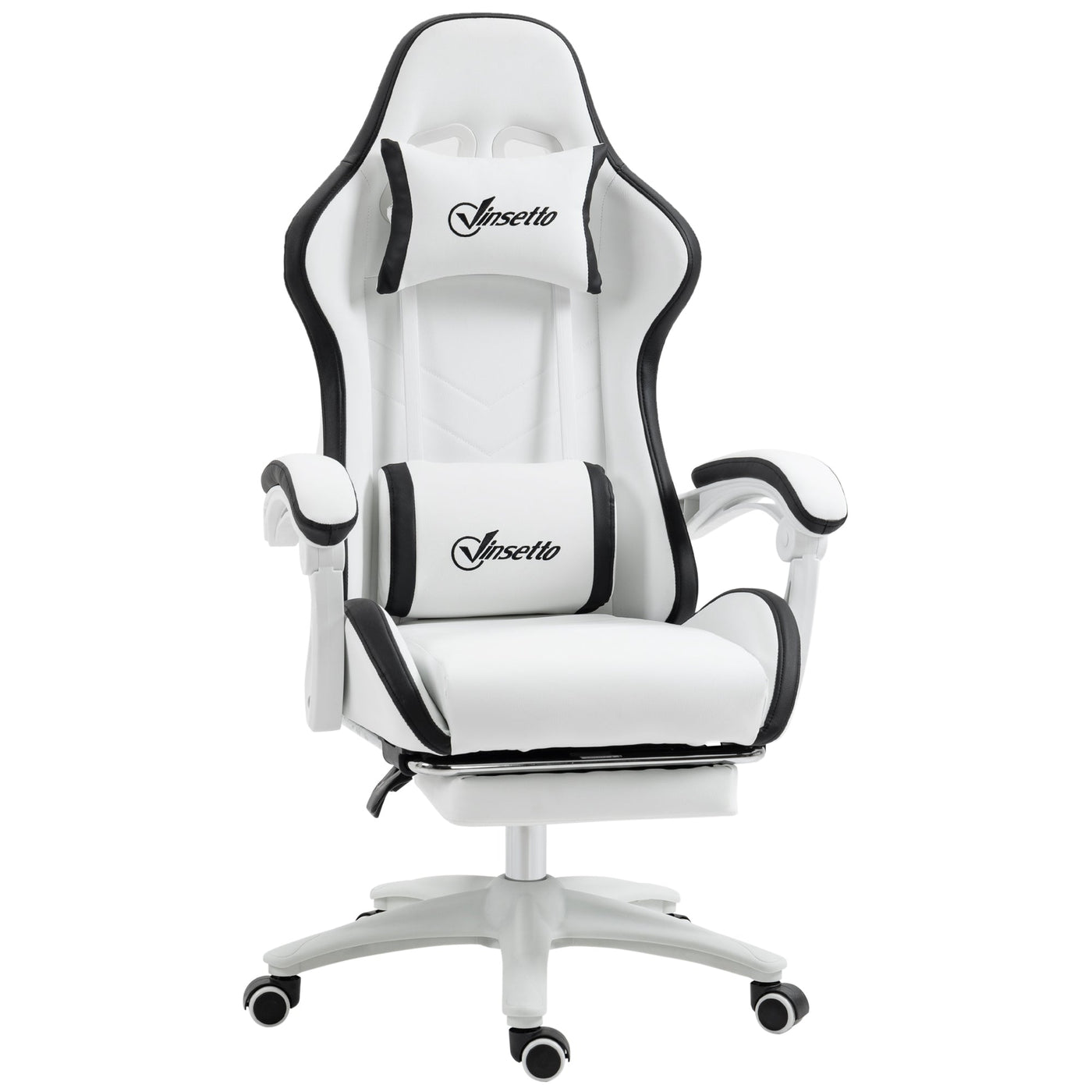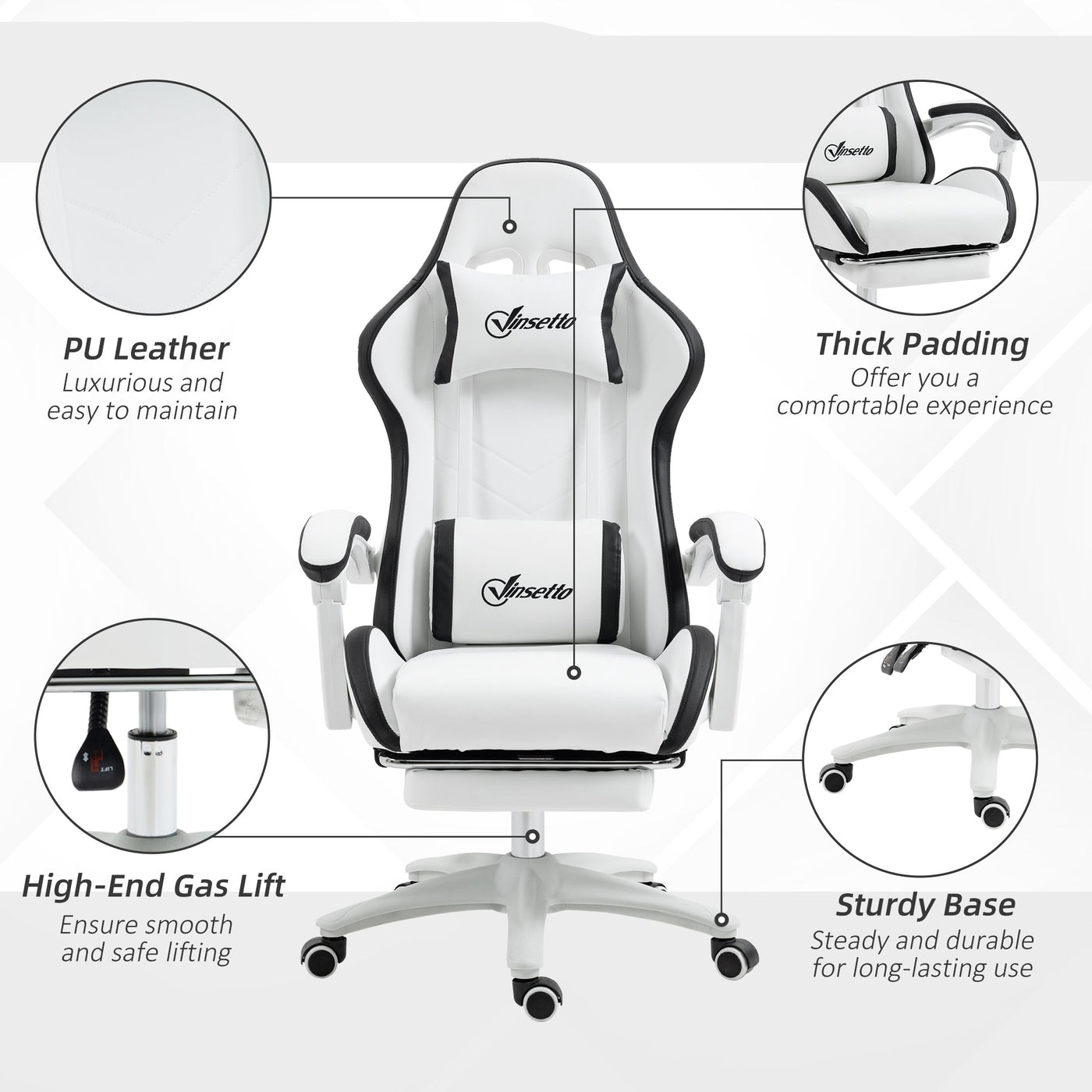 Vinsetto Computer Gaming Chair, PU Leather Office Desk Chair with Footrest, Swivel Wheels, 135° Reclining Back, Lumbar Support, Headrest for Home, White and Black - Black