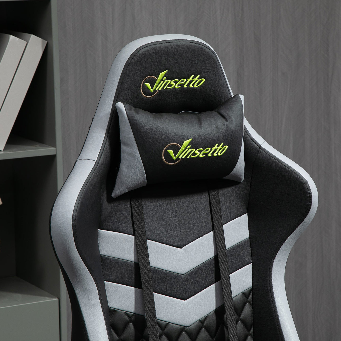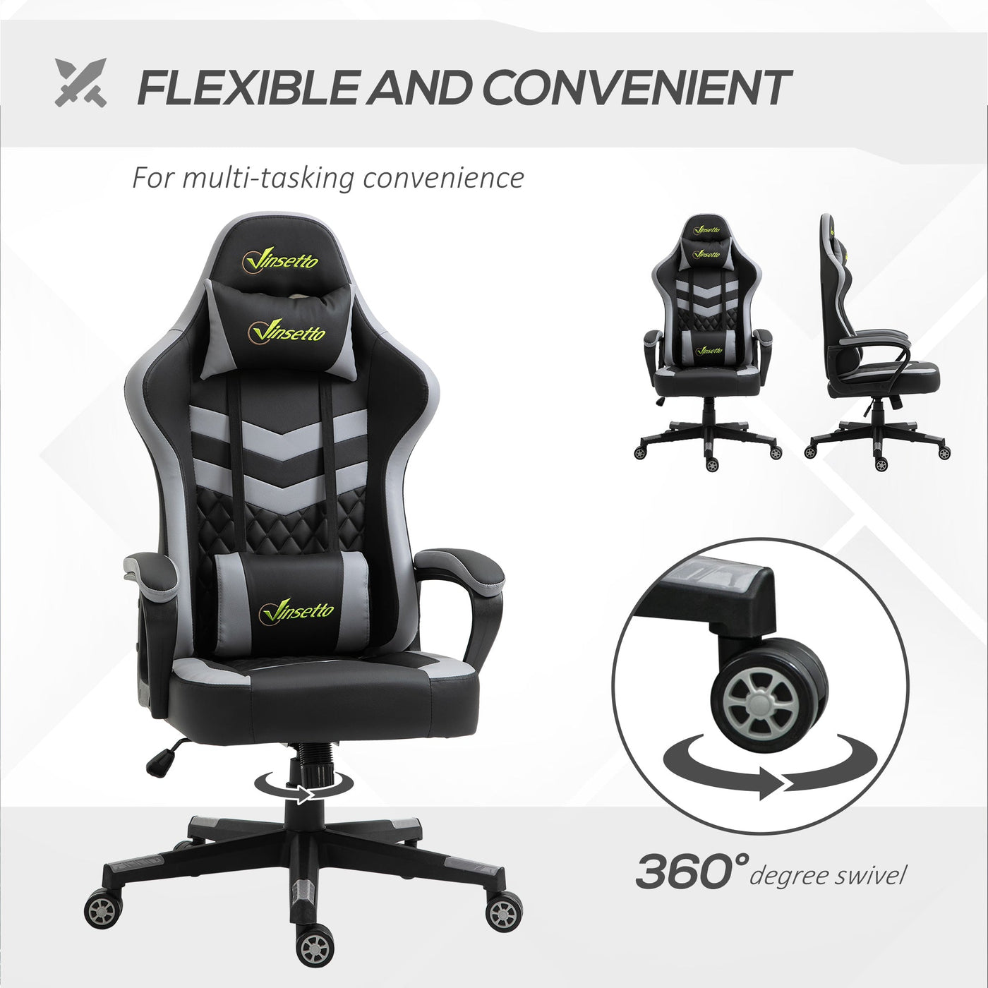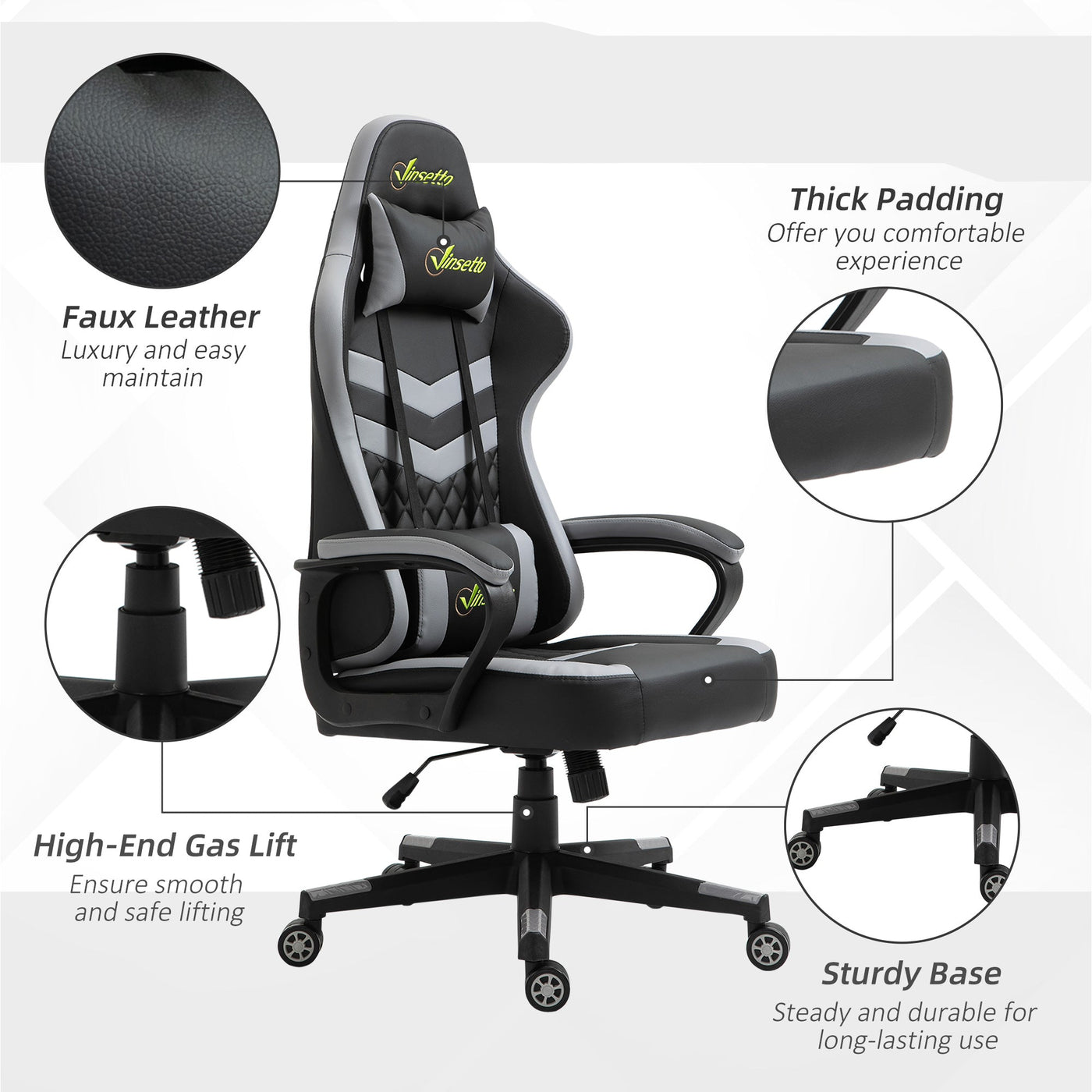 Vinsetto Gaming Chair, Computer Desk Chair with Lumbar Support, Faux Leather Racing Chair with Headrest and Swivel Wheels for Home Office, Black Grey - Black