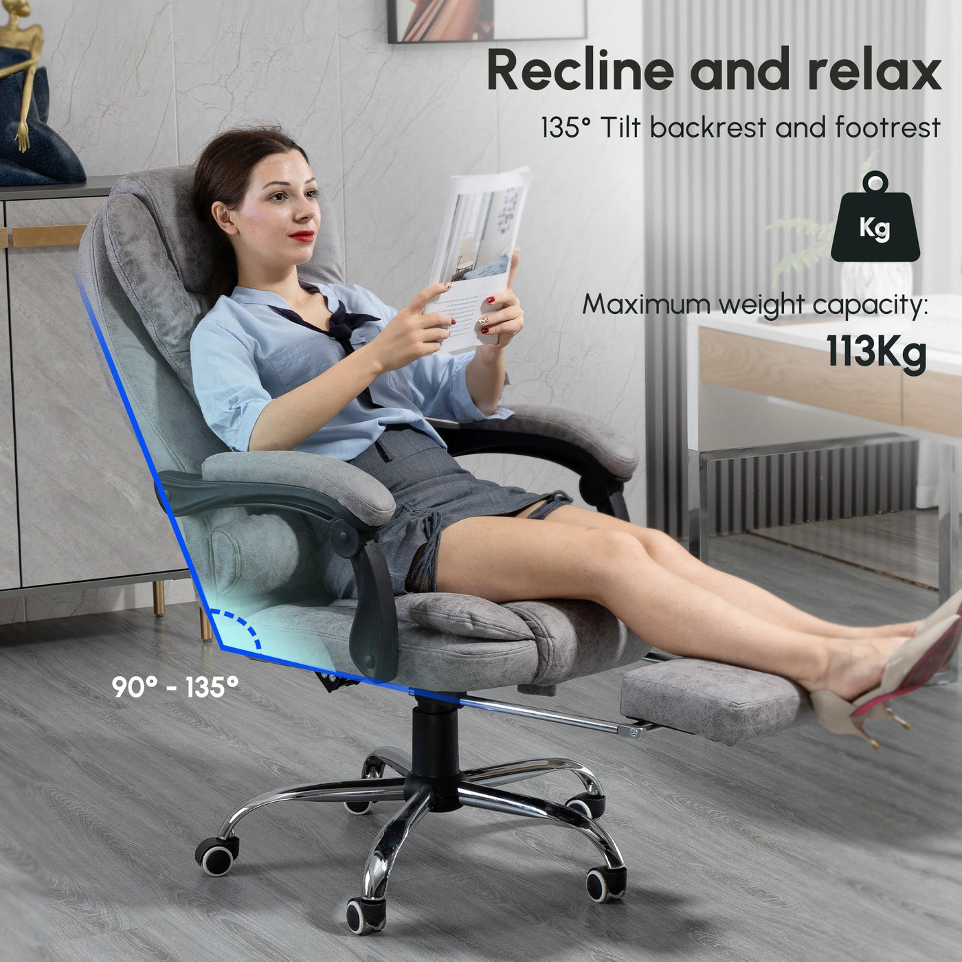 Vinsetto Heated 6 Points Vibration Massage Executive Office Chair Adjustable Swivel Ergonomic High Back Desk Chair Recliner with Footrest Grey - Grey
