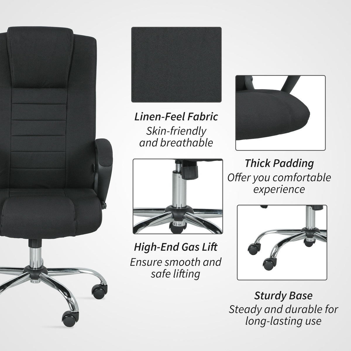 Vinsetto Linen-Look Swivel Office Chair - Black - Black