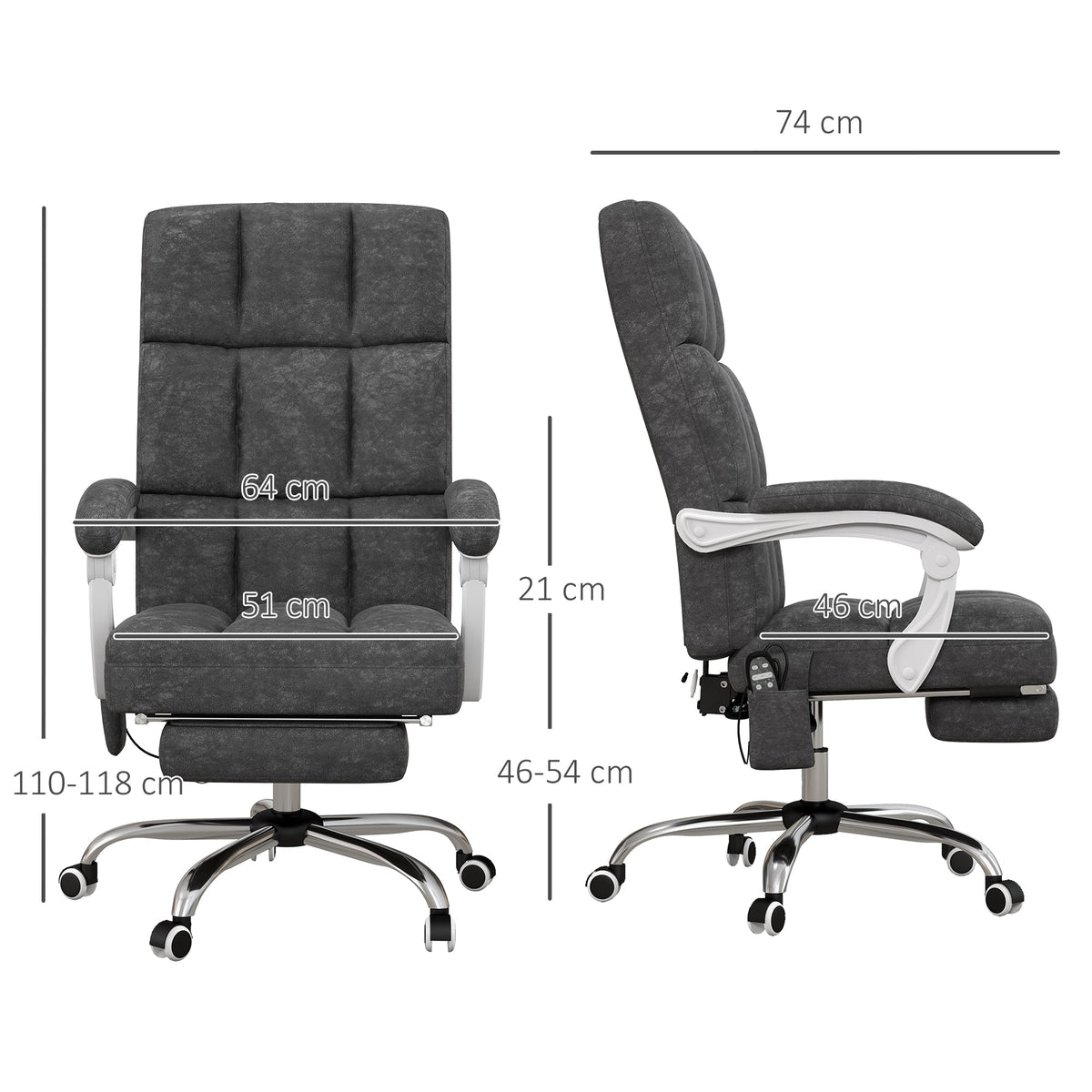Vinsetto Massage Office Chair, Ergonomic Desk Chair, Comfy Work Study Chair with Heat, Padded Seat, 135° Reclining Back and Footrest for Home Office, Charcoal Grey - Charcoal grey