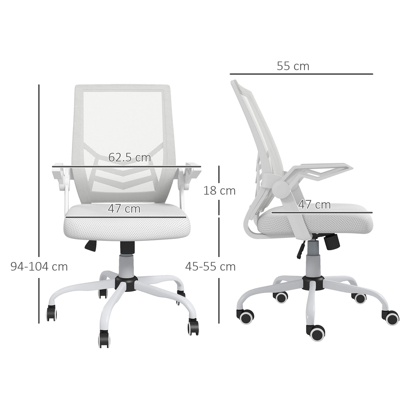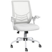 Vinsetto Mesh Office Chair, Computer Desk Chair with Flip-up Armrests, Lumbar Back Support and Swivel Wheels, White - White