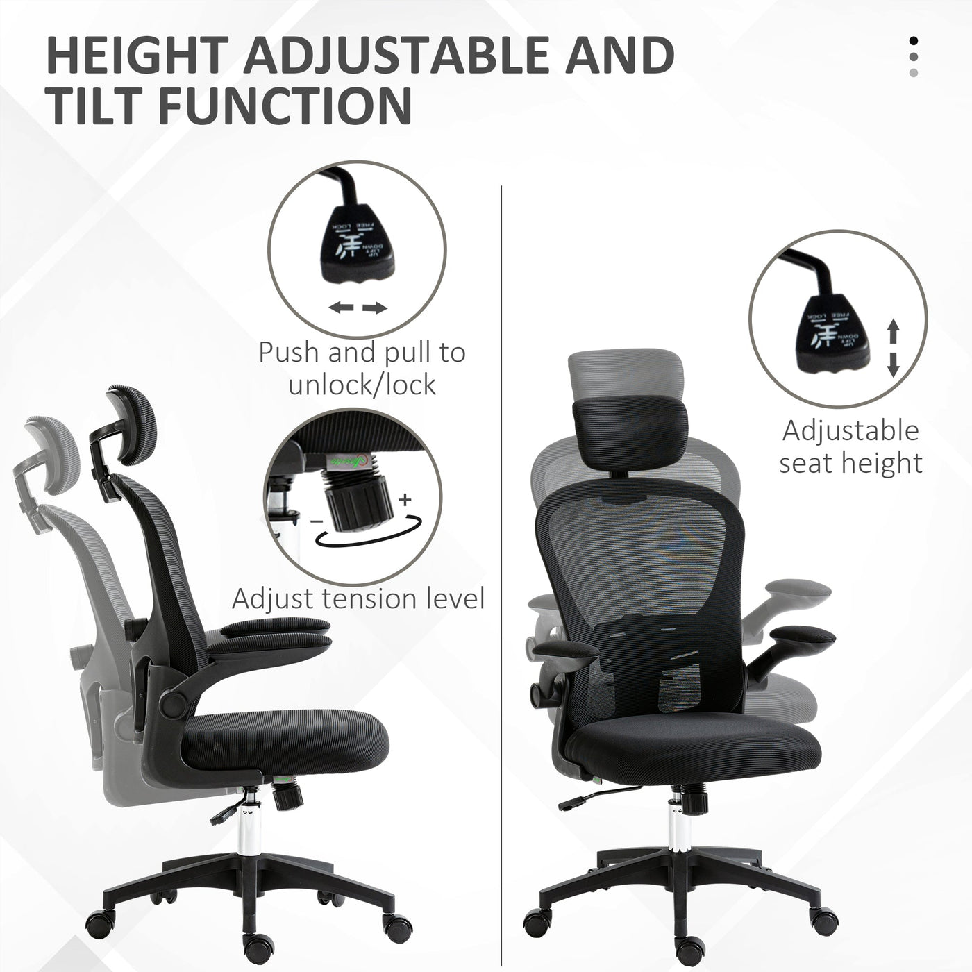 Vinsetto Multi-Adjustable Office Chair, with Lumbar Support, Headrest and Mesh Back - Black - Black