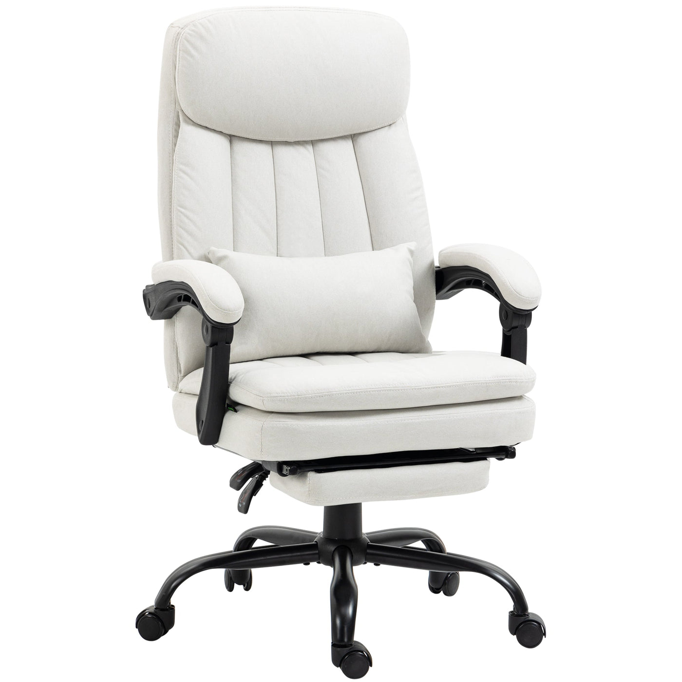Vinsetto Office Chair, Ergonomic Desk Chair with 6-Point Vibration Massage and Lumbar Heating, Computer Chair with Lumbar Support Pillow, 155° Reclining Back and Footrest, Cream White - Cream