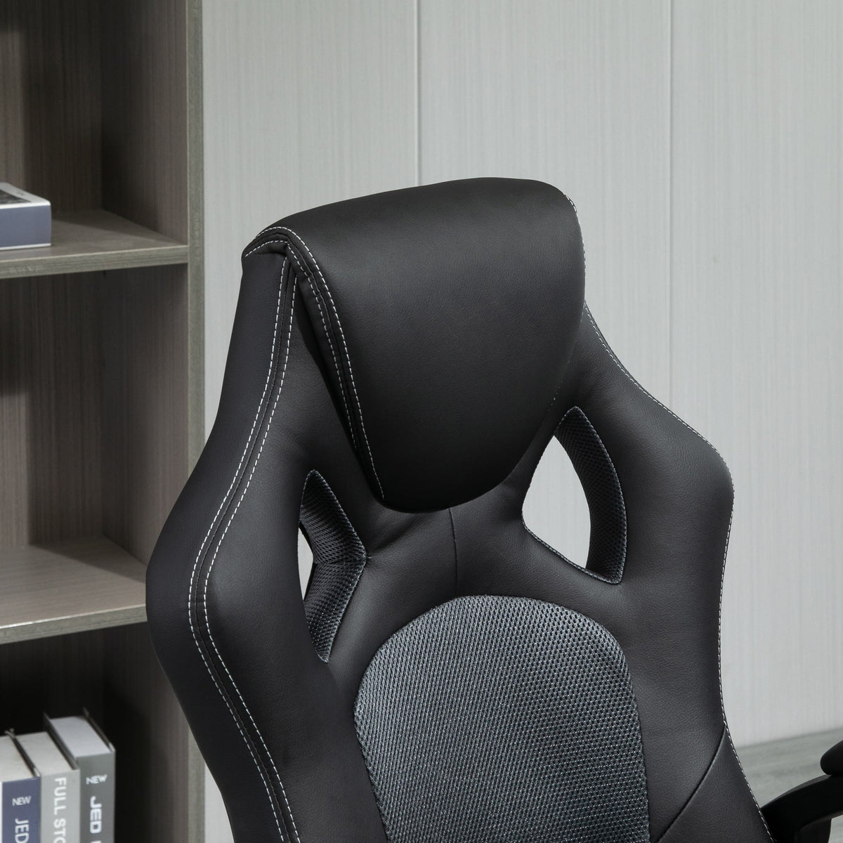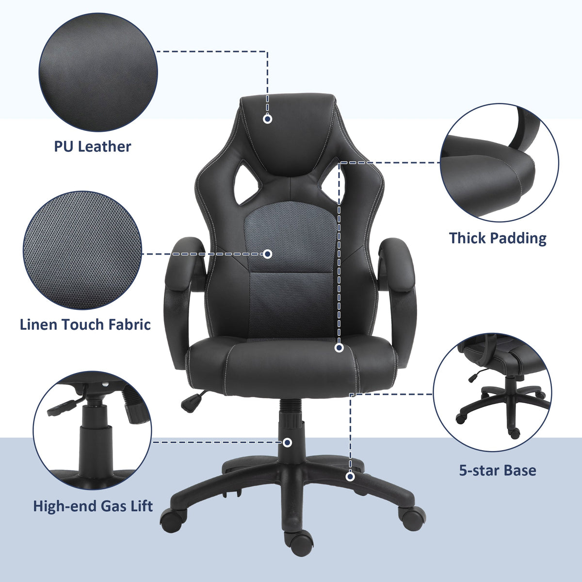 Vinsetto Office Chair Faux Leather Swivel Computer Desk Chair for Home Office with Wheels Armrests Black - Grey