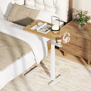 The rolling laptop PC table allows for seamless height adjustment from 66 cm to 100 cm using the gas spring pneumatic lift system, allowing you to switch between sitting and standing with minimal effort. Equipped with smooth rolling hidden wheels, this rolling laptop desk glides effortlessly across surfaces. The space-saving C-shaped design and low-profile base make it fit snugly with the sofa or bed edges. Besides, the handy headphone hook can be interchanged with cup holder or installed in a 360-degree rotating direction. For reliable structure, the stable H-shaped base provides enhanced stability and robust support. This rolling computer desk is designed to cater to different needs, either in the living room, bedroom, or study. Bullet Point: Height Adjustable for Comfort: The mobile standing desk offers a seamless height adjustment ranging from 66 cm to 100 cm, ideal for setting up an ergonomic workspace. The gas spring pneumatic lift system ensures a smooth and effortless transition between sitting and standing positions. Mobility Meets Convenience: The rolling laptop desk is equipped with hidden wheels, making it easy to move across rooms or tuck away when not in use. Its C-shaped design and low-profile base allow it to slide conveniently under couches or beds. Handy Cup Holder and Hook: In addition to a spacious tabletop, the overbed table features a cup holder to keep your beverages secure. Additionally, the handy headphone hook is designed to keep your desk area tidy and organized. All-Purpose Versatility: Ideal for living room, bedroom, or study, the height adjustable computer desk tucks easily under furniture while providing easy access. Whether used as a standing desk, sofa side table or overbed table, it caters to various needs. Sturdy Construction: Built with a robust and stable H-shaped base, this desk ensures a secure and steady surface to work on. Its sturdy design supports your laptop, books, and other essentials with ease.